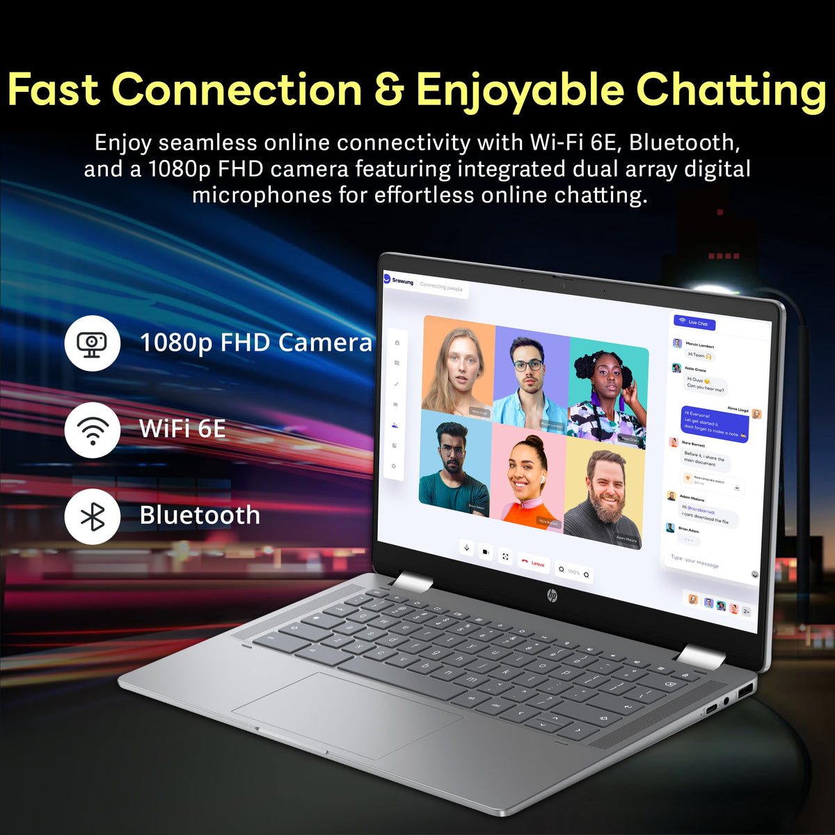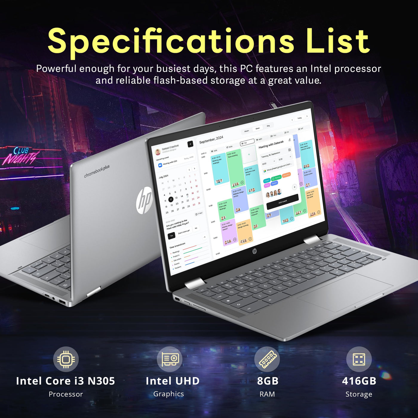Hp 14'' 2 In 1 Fhd Touchscreen Chromebook Plus Laptop, Intel I3 N305, 8Gb Lpddr5, 416Gb Storage(256Gb Ssd+160Gb Docking Station)