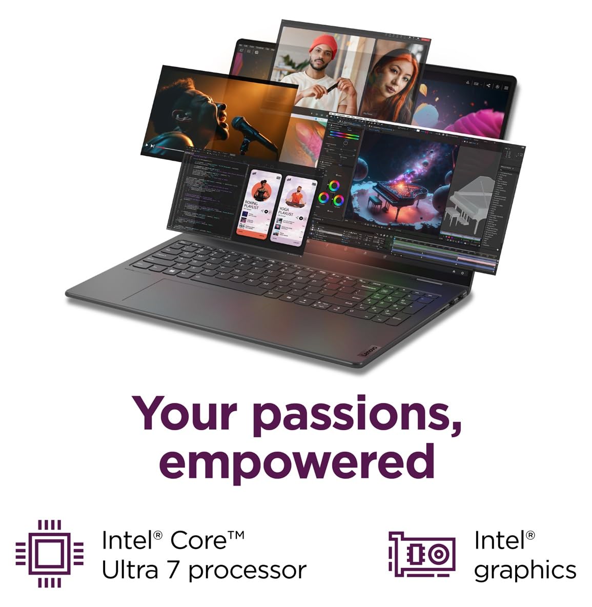 Unlock New Ai Experiencesunlock Ai Experiences With The Latest Intel Core Ultra Processors, Like Creating Images Or Music From Text Or Dramatically Improving Photos And Videos In A Few Clicks, Without The Worry Of Performance Lags And Battery Drain. With Intel Integrated Graphics Onboard, The Yoga 7I 2-In-1 Laptop Unleashes Supercharged Visuals For An Elevated Creative Journey.&Nbsp;The Yoga 7 2-In-1 Laptops Adaptability Comes With Equal Smarts-Lenovo Ai Engine+ Is An Ecosystem Of Intuitive Features Designed To Enhance Your Creativity And More.&Nbsp;Look Sharp In The Best Light On The Fhd Ir Camera. Your Voice Through Loud And Clear With Smart Noise Cancelling Mics, While With Smart Login, Start Your Day Instantly At The Touch Of Your Finger.&Nbsp;Together With Copilot On Windows 11, You Can Automate Tasks, Conjure Up Inspirations, And Get Tailored Answers With The Help Of Prompts Using Our Ai-Powered Intelligent Assistant.Technical Specificationsprocessor: Intel Core Ultra 7 155U Processor (12 Cores (2P + 8E + 2Lpe), 14 Threads, Max Turbo Up To 4.8Ghz, 12Mb Cache)Npu: Intel Ai Boost Integrated In Intel Core Ultra Processordisplay: 16'' Wuxga (1920 X 1200) Ips 300Nits Glossy / Anti-Fingerprint, Dolby Vision, Tv Low Blue Light, Glass, Touch Displaygraphics: Integrated Intel Graphicsmemory: 16Gb Soldered Lpddr5X-7467 Memorystorage: 1Tb Pcie Nvme M.2 Ssdnetworking: Wi-Fi 6E 802.11Ax + Bluetooth 5.3Operating System: Windows 11 Home 64-Bitbattery: Integrated 71Wh, 65W Ac Adaptercamera: Fhd Ir Webcam With Privacy Shuttersecurity: Tpm 2.0, Fingerprint Reader, Facial Recognitionkeyboard: Backlit, Englishdimensions: 14.24 X 9.84 X 0.67 Inchesweight: 4.39 Lbsi/O Ports2 X Thunderbolt 42 X Usb-A 3.2 Gen 1Hdmi 2.1Microsd Card Readerheadphone / Microphone Combo Jack