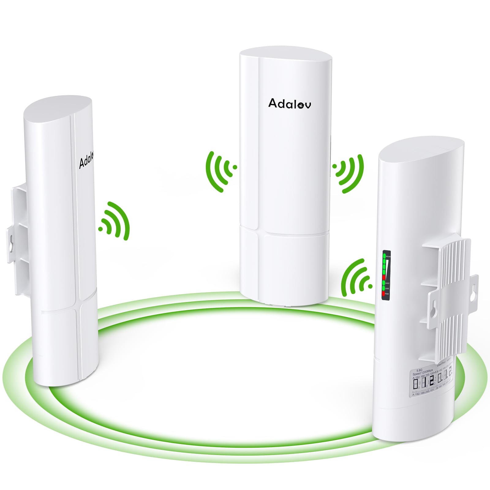 Adalov 3Pcs Wireless Bridge Kit, Gigabit Point To 2 Points Outdoor Wifi Bridges For 3Km Long Range Network Expansion, 5.8G High Speed Wifi To Ethernet Cpe With 1000Mbps Lan Port For Garage, Barn, Farm