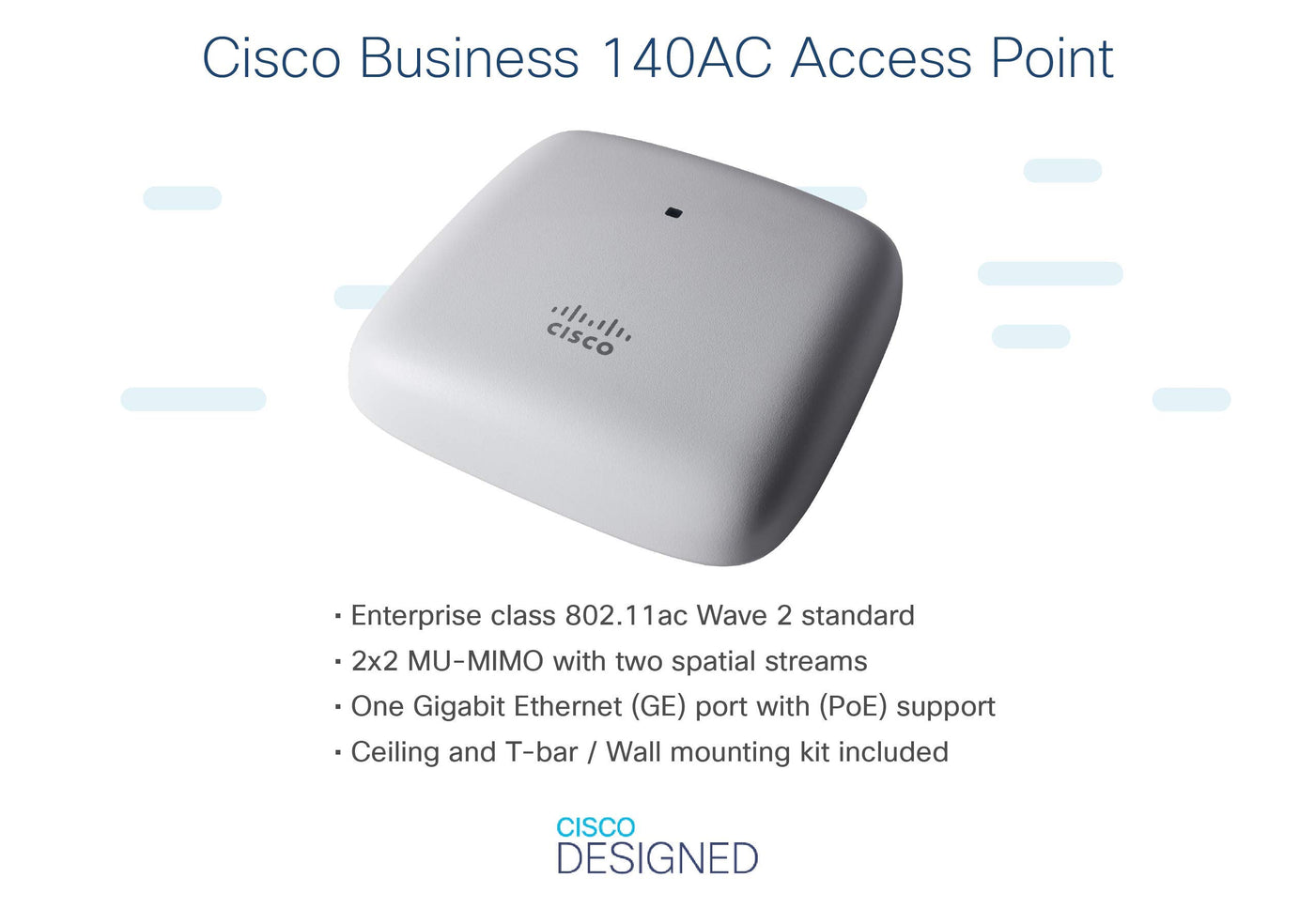 The Cisco Business 140Ac Access Point Multi-Pack Of Three Access Points Deliver Enterprise-Grade Mu-Mimo (2X2) Wireless For A Small Business To Get Up And Running Quickly Ideal For Indoor Wi-Fi Coverage, The Cisco Business 140Ac Bundle Delivers Highly Secure And Reliable Wireless That Can Be Set-Up In Minutescompatible With Cisco Business 100 Series Mesh Extenders To Rapidly Expand Your Wi-Fi Network