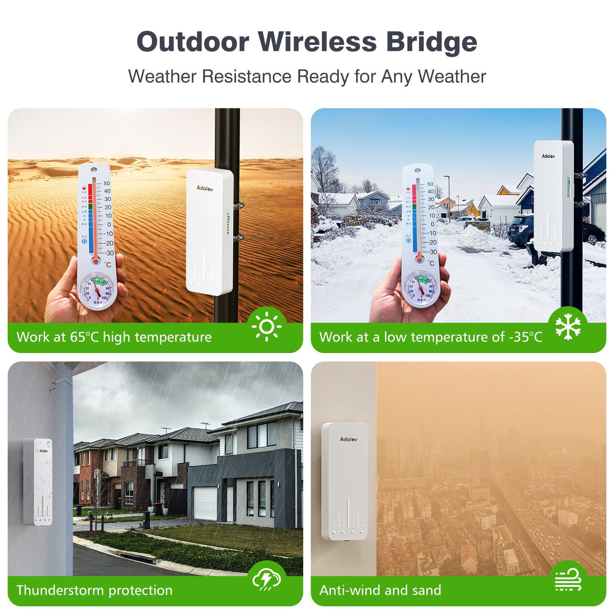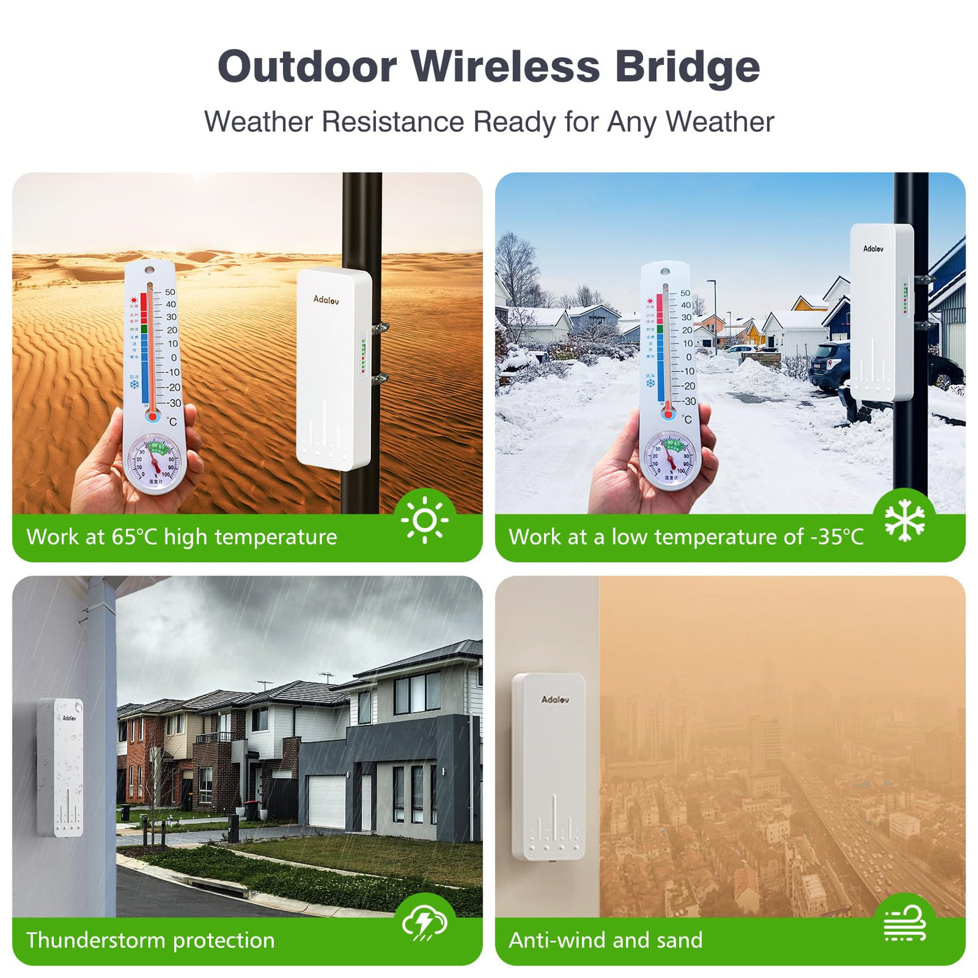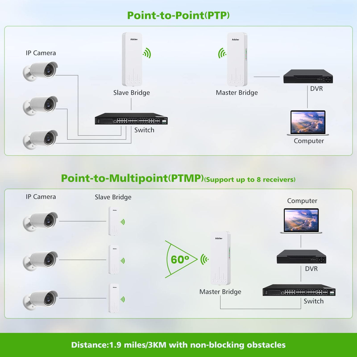 Wifi Bridge Replaces Ethernet Cabling, Providing A Point-To-Point Wireless Connection To Link Multiple Locations And Share A Single Internet Connection. Adalov Wireless Bridge Supports Various Modes Like Cpe, Client Bridge, Ptp, And Ptmp, Making It Ideal For Surveillance Cameras And Extending Wi-Fi To Distant Areas Such As Barns, Shops, Garages, Warehouses, Factories, And Construction Sites. Cpe660 Is Suitable For Farm, Barn, Warehouse, Shop, Building To Building, Garage For Long Range Network Extender, Starlink Or Surveillance Camera. And Could Work With Starlink.You Can Easily Connect Your Starlink Router At Its Clear Line Of Sight Location With Where Ever You Need The Internet Service.
