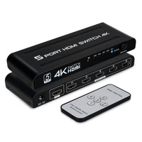 4K Hdmi Switch 5 In 1 Out, 5 Port Hdmi Switcher Selector Box With Ir Remote Control & Auto Switch, Support 4K@30Hz, Hdr, Hdmi 1.