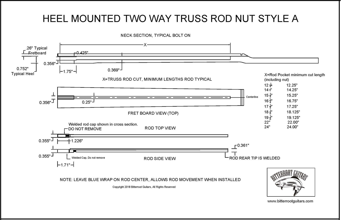 Truss Rod For Guitar Builders. Two Way Adjustable Rod Is For Inserting In Neck While Building. Similar To Many Oem Style Rods. 15 1/4 Overall Length Specifications: 15 1/4 Length Two Way Adjustment 4Mm Allen Key Head Body Is Wrapped In Blue Shrink Wrap To Allow For Gluing. Works Very Well For Heel Mounted Nut, Also Can Be Used For Headstock Setup Or Tilt Back Headstock Requires: 15 1/4 Overall Length We Have Drawings Available For This Application, Please Contact Us For Additional Information.