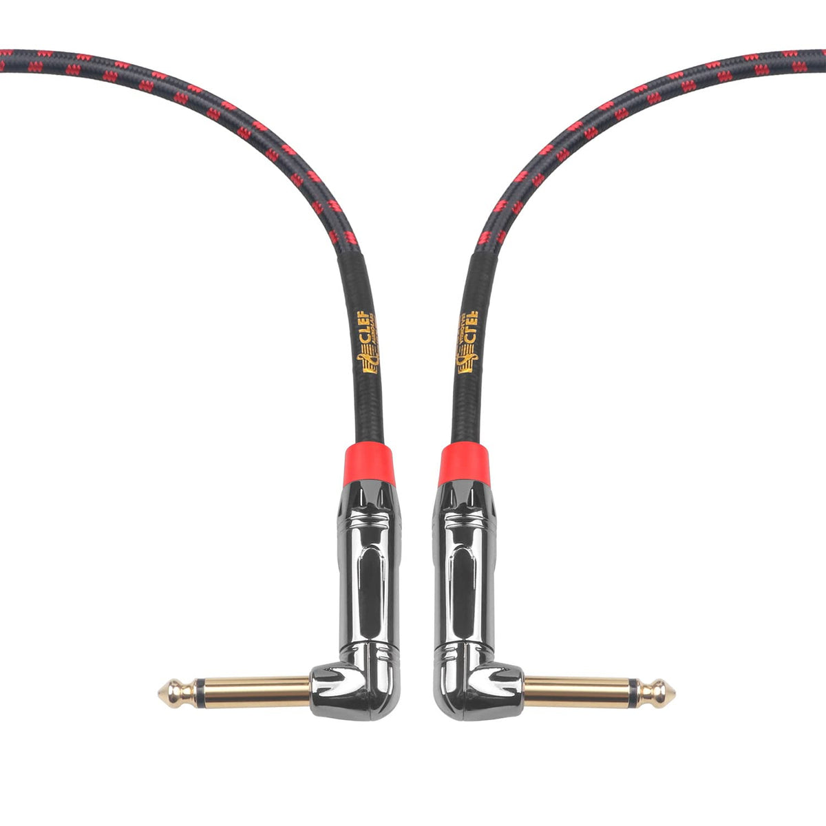 Clef Audio Labs Guitar Patch Cable, 6 Inch 1/4 Inch Ts Right Angled Guitar Pedal Effects Instrument Cord, 22Awg, Chrome Zinc A