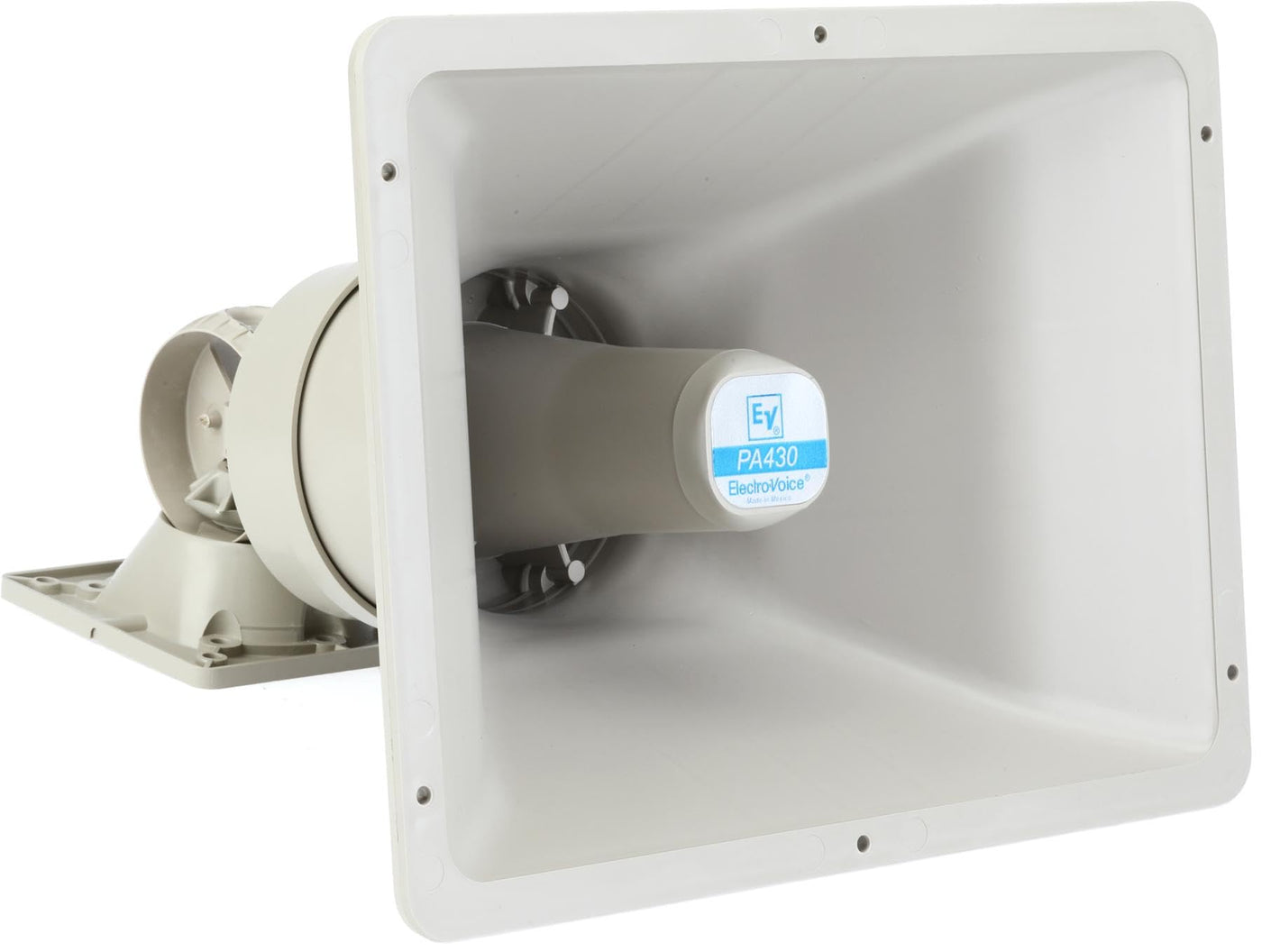 Q: What are the key features of the Electro-Voice PA430 Paging Horn?A: The Electro-Voice PA430 Paging Horn features a robust 30W power handling, a weather-resistant construction for durability, and a generous 60° x 40° dispersion pattern that ensures wide coverage for your sound system.
