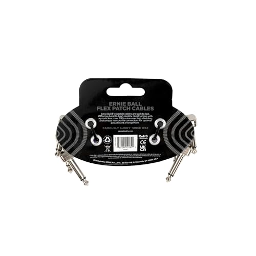 Q: How long are the Ernie Ball Flex Patch Cables?A: Each cable in the Ernie Ball Flex Patch Cable 3 Pack measures 3 inches in length, making them ideal for compact pedalboard setups where space is limited.