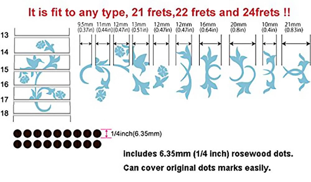 They Look Like Real Inlays! Easy To Apply & Remove. Inlay Stickers Are Super-Thin And Removable! You Can Modify Your Guitar So Easily!! They Will Not Get Caught By Your Fingers While Playing! Its Possible To Use Finger Ease Spray Or Lemon Oil After Applying The Stickers. No Adhesive Will Be Left Behind After You Peel Off The Sticker.