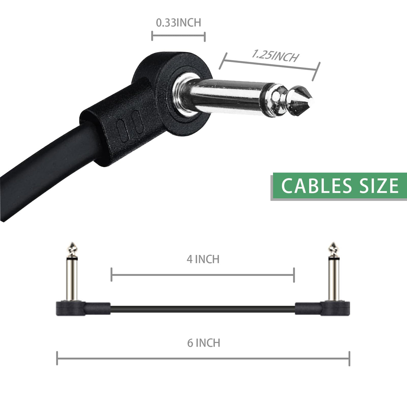 Goghost 4 Inch Guitar Patch Cables 6 Pack, 1/4'' Ts Right Angle Effect Pedal Flat Cables, Black
