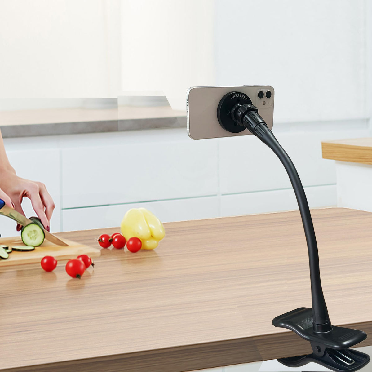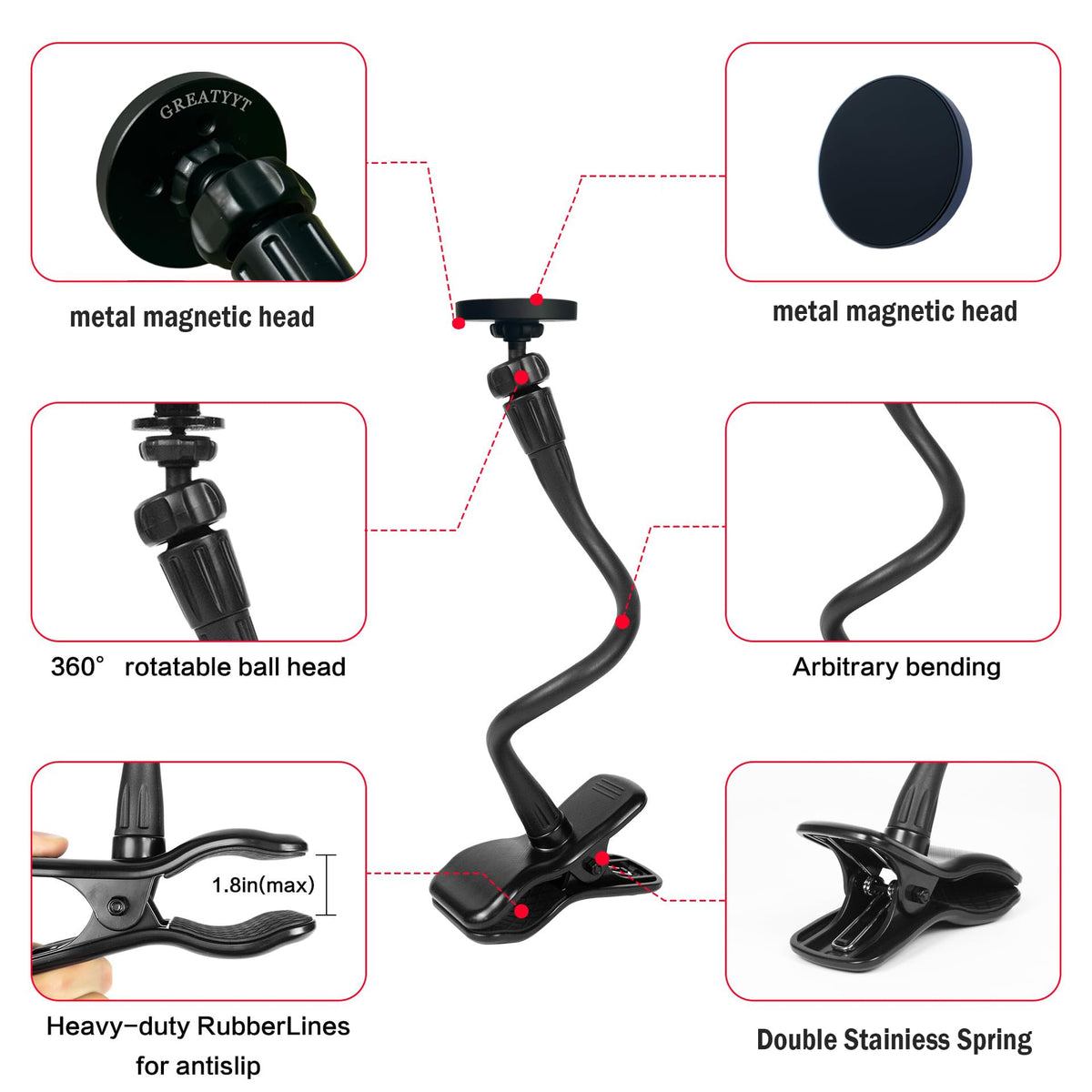 Greatyyt Magnetic Gooseneck Phone Holder Clamp Mount For Magsafe,Cell Phone Clamp Clip For Guitar, Bass, Desk, Pole, Magnet Phon