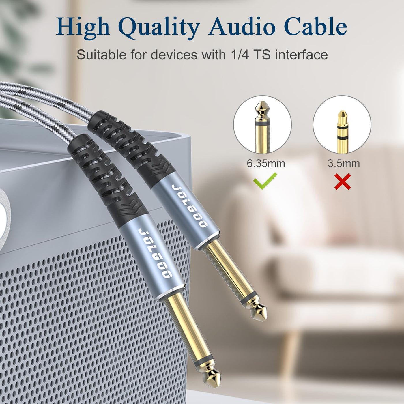 Jolgoo 1/4 Inch Guitar Instrument Cable 10 Ft 2 Pack, 1/4 Inch Ts Guitar Cable, Quarter Inch Cable, For Electric Guitar, Bass, K