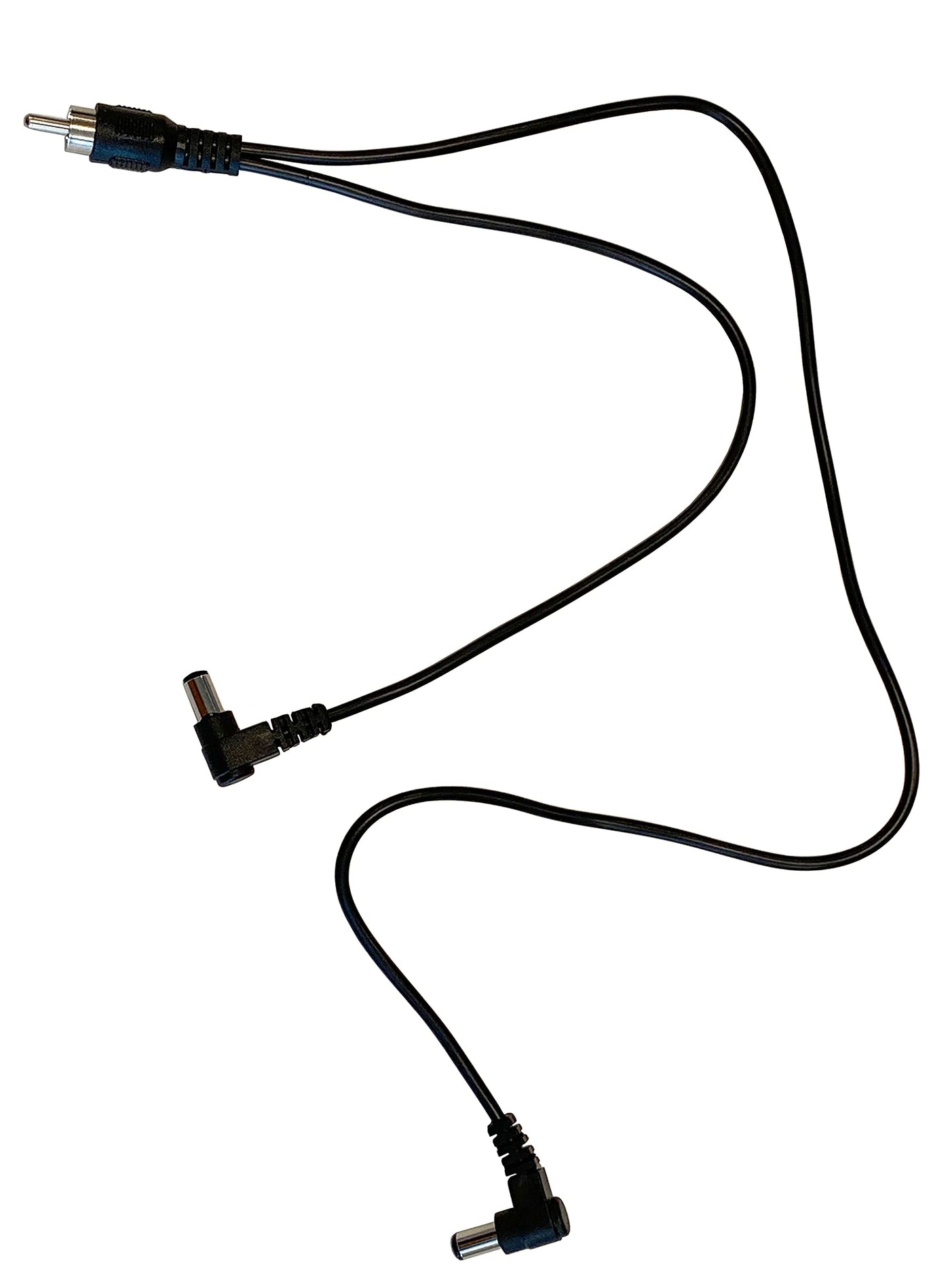 Q: What is the length of the Kurrent Electric DC power cables?A: The Kurrent Electric DC power cables feature a flexible length of approximately 9.5 inches between the RCA style plug and one of the DC barrel plugs. The other DC plug is about 17.5 inches from the RCA plug, resulting in a total tip-to-tip length of about 20 inches.
