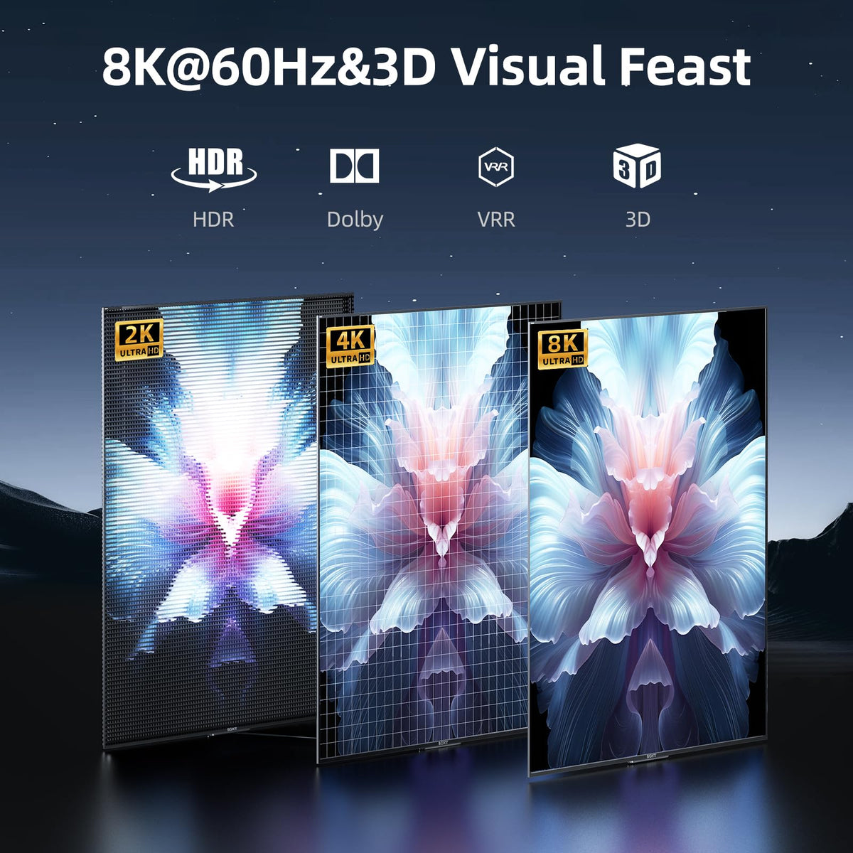 8K(7680*4320) Hdmi Bi-Directional Switcher Splitter The Ports On Both Ends Of The Switch Can All Be Used As Input Or Output The Splitter Mode-1 In 2 Out, Connect 1 Signal Source To 2 External Hdmi Displays(Only Support One Display At A Time) 1. Connect Your Signal Source( Ps4/5, Xbox, Etc) To The 1 Hdmi Input Port 2. Connect The 2 Output Ports Of The Switcher To Displays(Monitor, Tv Or Projector Screen) 3. Press The Button To Switch The Monitor(The Indicator Light Will Show The Monitor Of Which Side Is Working) On This Mode, You Can Watch Video Alone In Small Screen To Enjoy Your Own Time , And Can Also Switch To The Large Screen To Enjoy Cinematic Video Feast With Your Family. The Switcher Mode-2 In 1 Out, Connect 2 Hdmi Devices To 1 Display, Press The Button On The Switcher To Toggle Between The Two Signal Sources Without Any Effort. 1. Connect Your Signal Sources( Ps4/5, Xbox, Etc) To The 2 Hdmi Input Ports 2. Connect The 1 Output Port Of The Switcher To Display(Monitor Or Tv) 3. Press The Button To Switch The Signal Sources(Check The Indicator Light, You Will Know Which Signal Host Is Active)