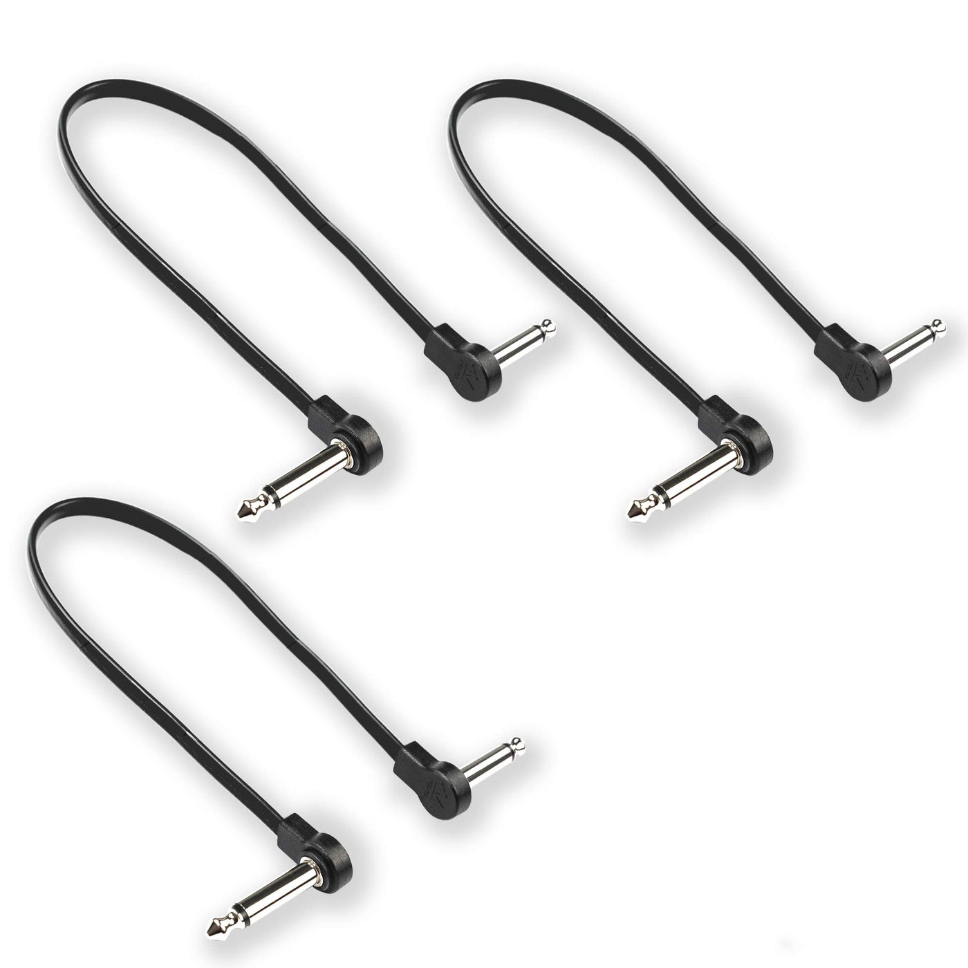 M Maka Flat Low Profile Guitar Patch Cable 20 Inch For Effects Pedals, 1/4 Inch Right Angle, Black, 3 Pack New Version