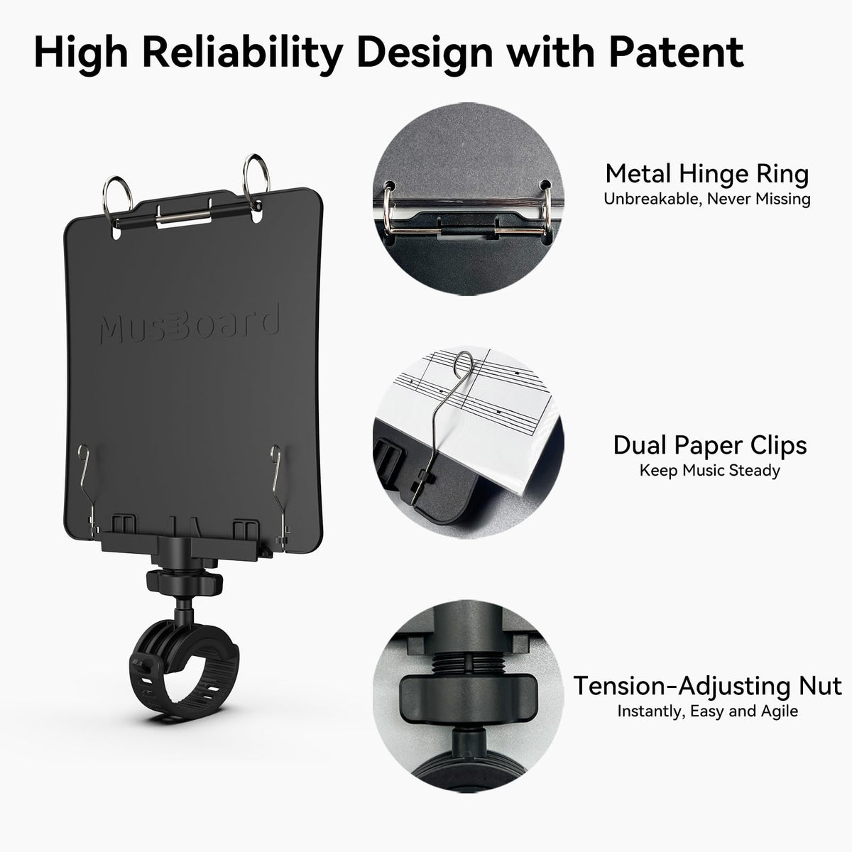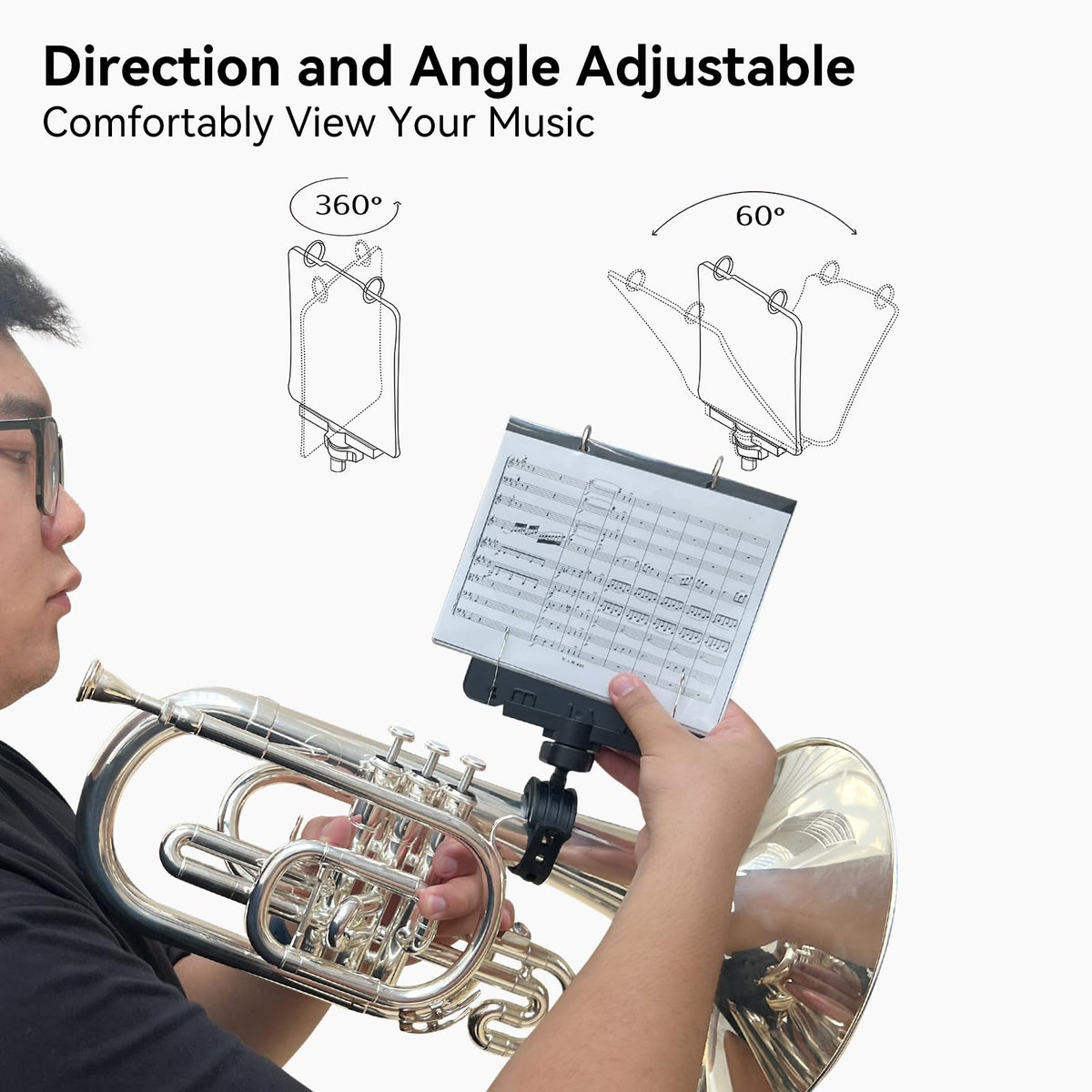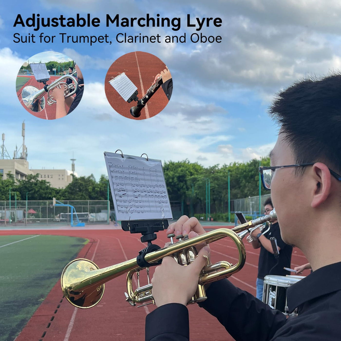 Musboard Marching Lyre Mb-Tc10, Adjustable Marching Band Music Lyre For Trumpet, Clarinet And Oboe With 10 Pages, Holds 20 Sheet