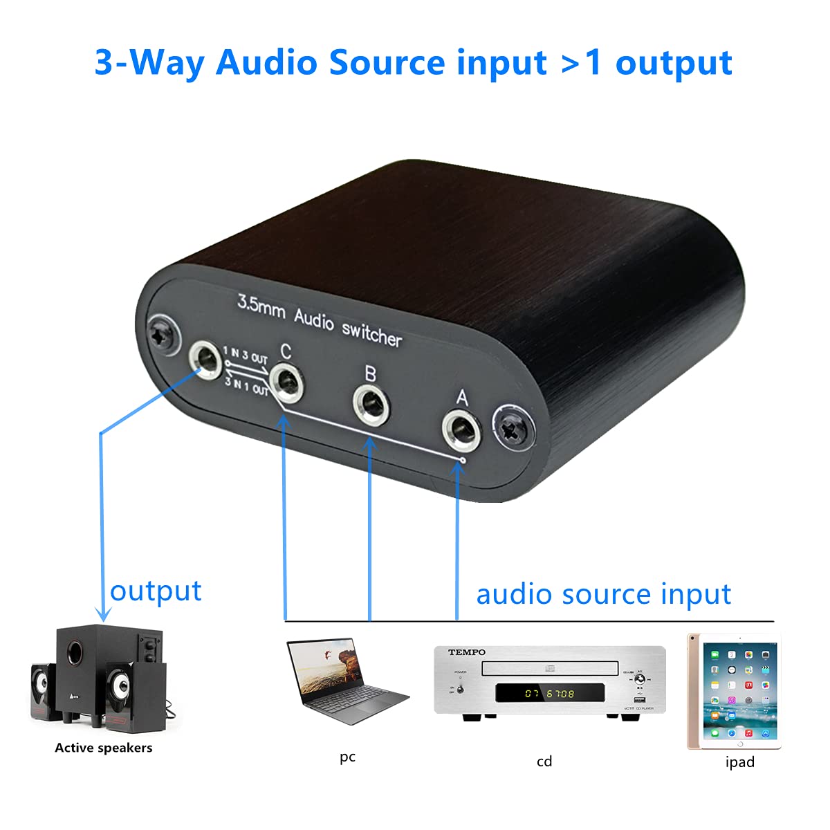 New D3 3(1) In 1(3) Out 3.5Mm Stereo Audio Switch Source Input Signal Switcher Selector Splitter Box Mini