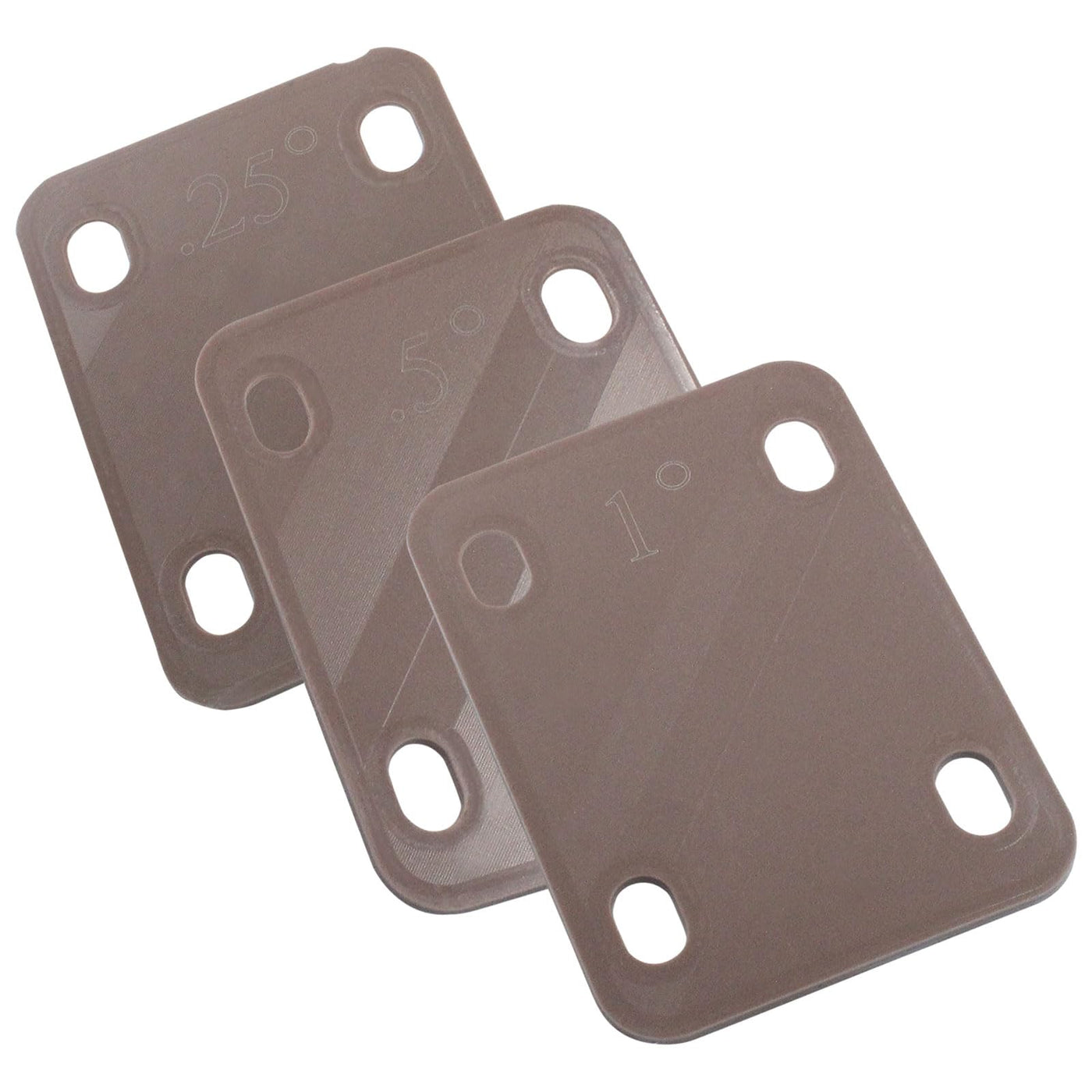 Specification Material: Nylon Color: Brown Shape: Rectangle Size: 76 X 56 Mm/ 3 X 2.2 Inch Package Included: 1 X 0.25 Degree Guitar Neck Shim Protection 1 X 0.5 Degree Guitar Neck Shim Protection 1 X 1 Degree Guitar Neck Shim Protection Note Color Difference May Exist Due To Different Displays There May Be 1-2Mm Error In Manual Measurement