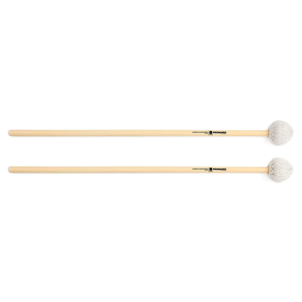 The Andrew Markworth Am6R Mallets Feature Medium-Hard, 1 1/4 Weighted Mushroom Shaped Cores Wrapped In Synthetic Cord On Rattan Shafts. All Mallets In The Andrew Markworth Signature Series Were Built Using Promark Proprietary New Mallet Technology. Rather Than Purchasing Off The Shelf Parts And Utilizing Outdated Manufacturing Practices, All Cores Are Injection Molded In House And Threaded Onto Shafts Using Our Patented Insert Design For Unprecedented Consistency And Durability. In Final Assembly, All Promark Mallets Are Wrapped Using A State Of The Art Winding Machine Developed From The Proprietary Winding Technology Of The Worlds Premier Guitar String Manufacturer.