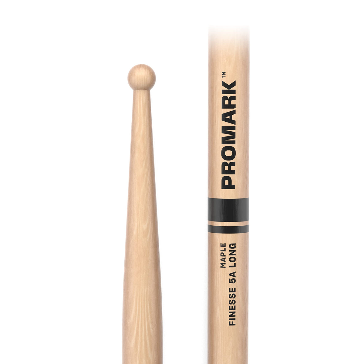 Promark Finesse 5A Long Maple Drumsticks, Small Round Wood Tip, One Pair
