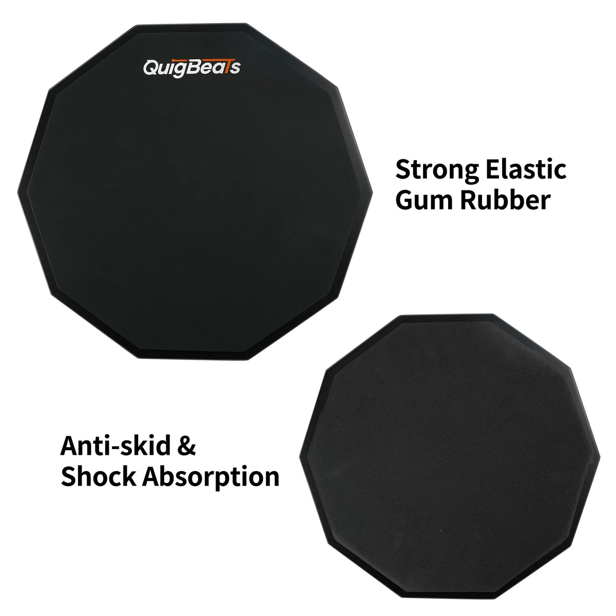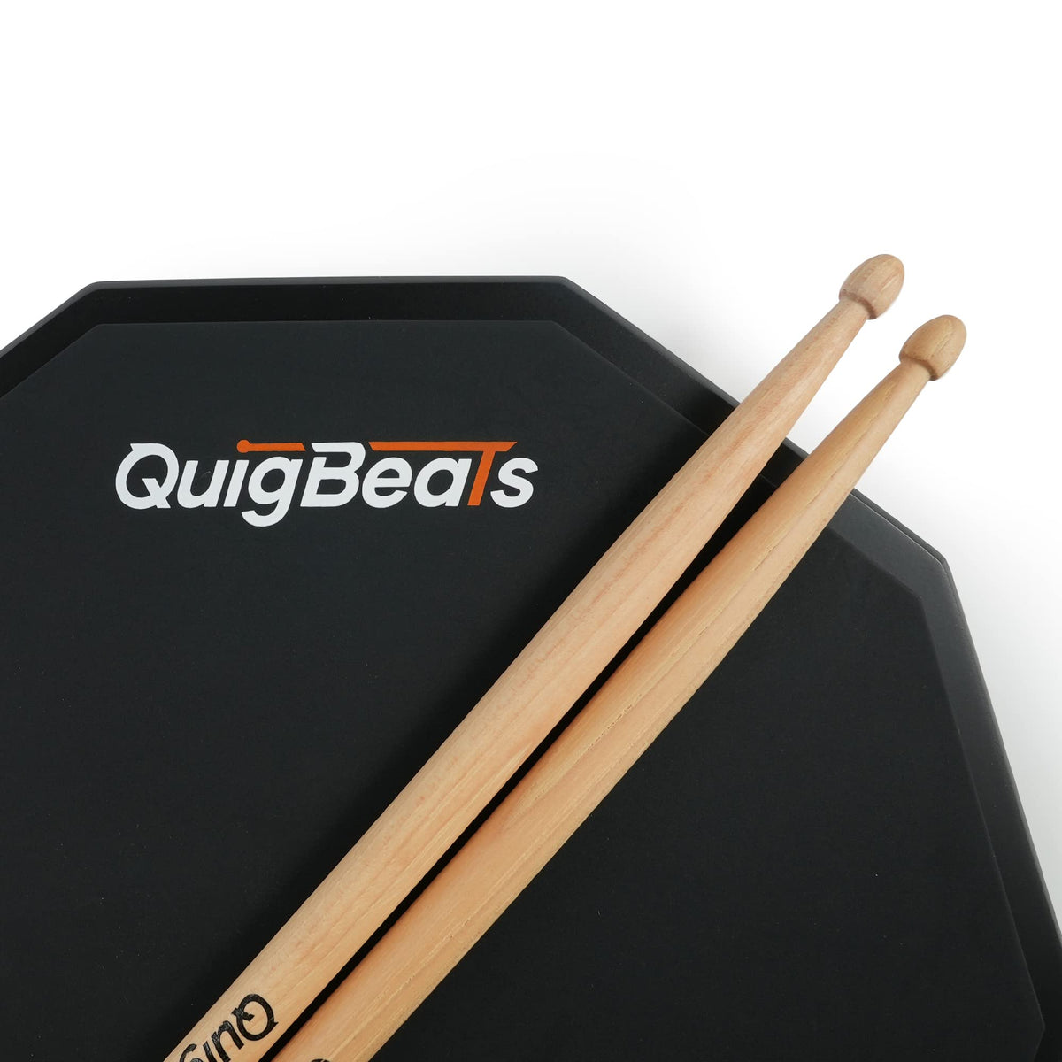 Quigbeats Drum Pad & Premium Drum Sticks, Silent Drum Practice Pad With Pitch Matched 5A Drumsticks, 12 Inch Single Side Practic