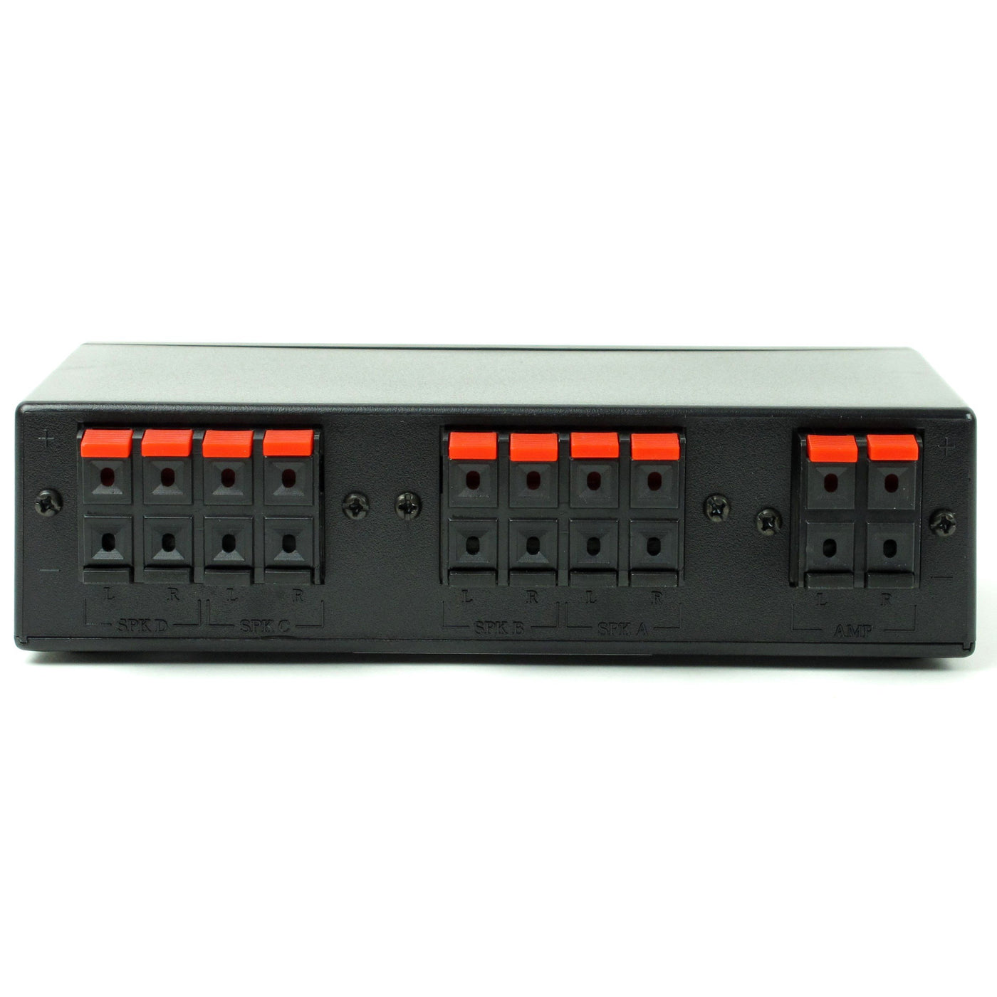 Q: Is the speaker selector compatible with all audio systems?A: Yes, the speaker selector is designed to work with most standard audio systems, including home theater receivers, amplifiers, and stereo systems, as long as they support external speaker connections.