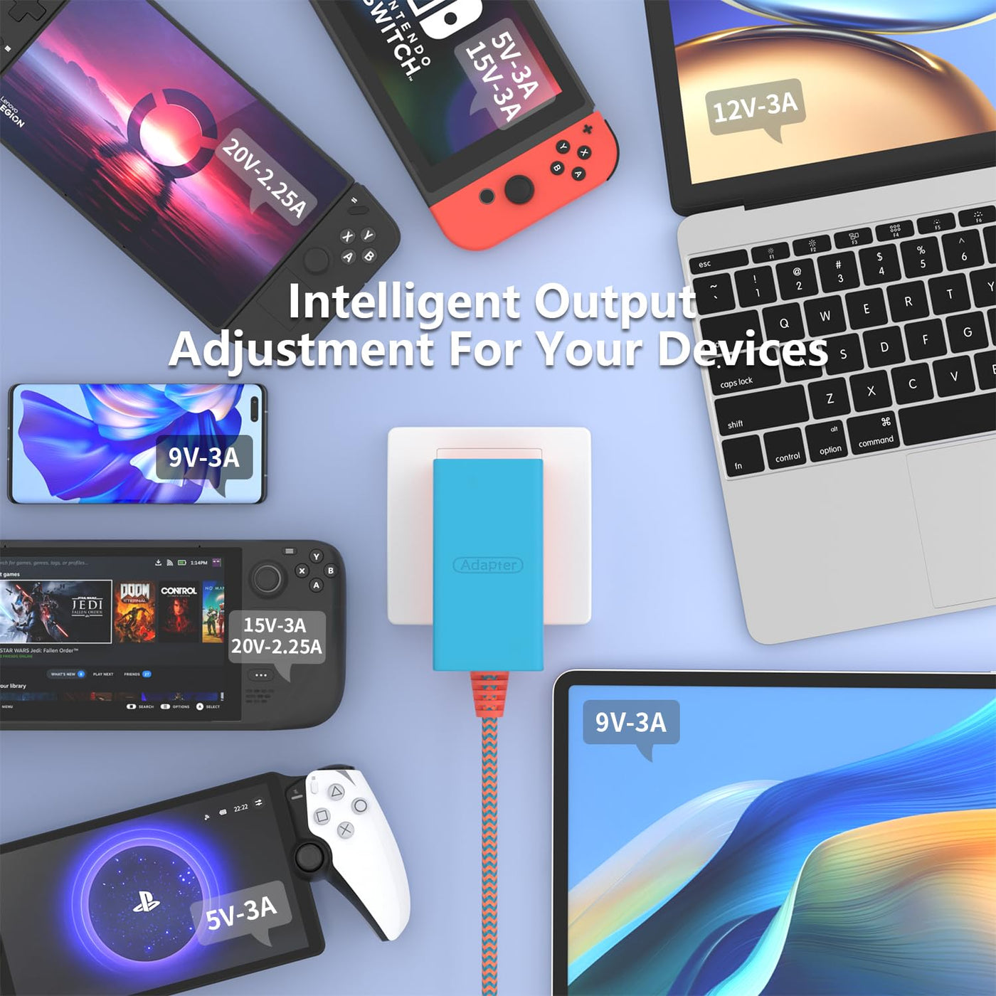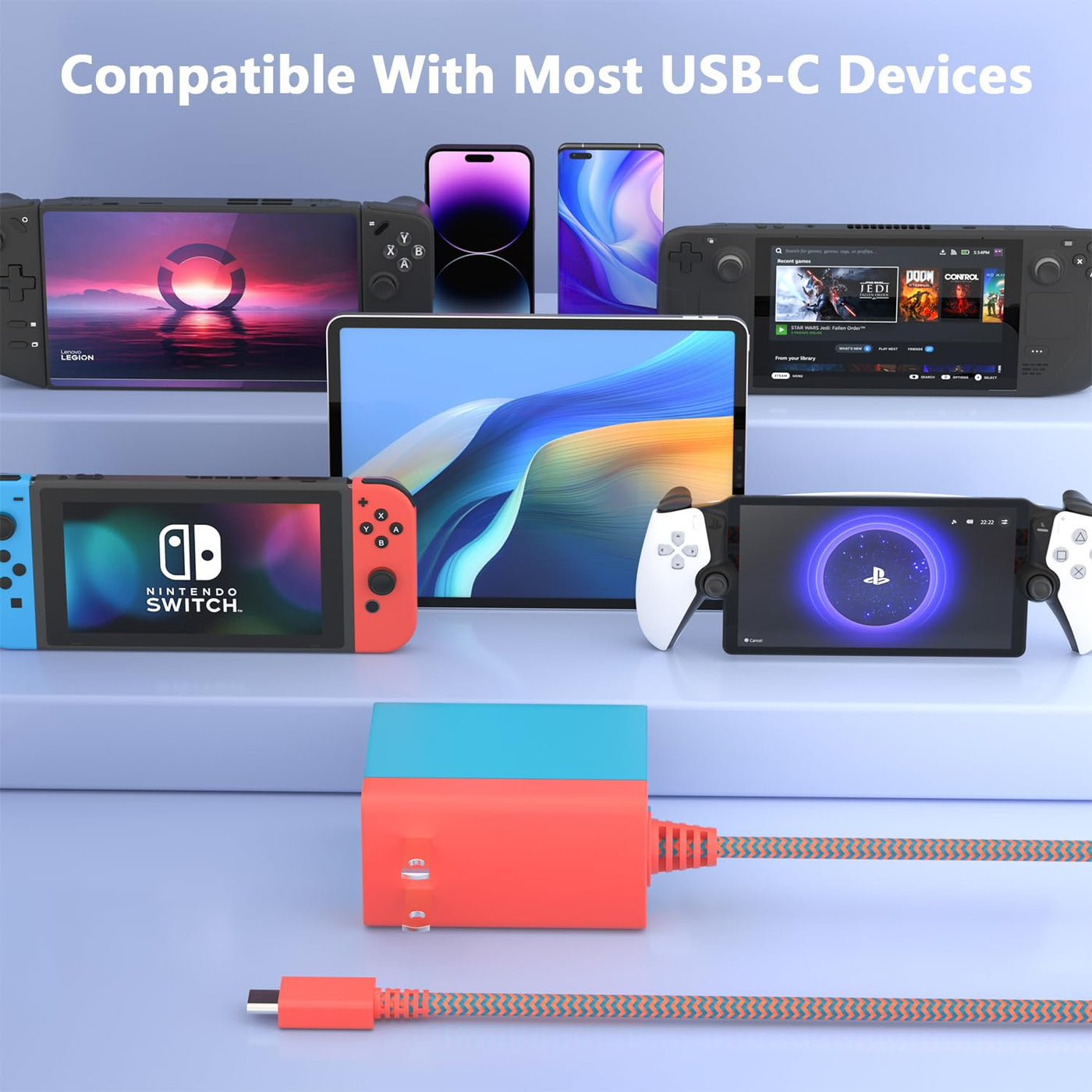 Rgeek Charger For Nintendo Switch, 45W Switch Ac Power Adapter, 15V 2.6A Fast Charging With 5Ft Powerful Cable Compatible With Switch Lite/Switch Oled/Steam Deck/Playstation Portal