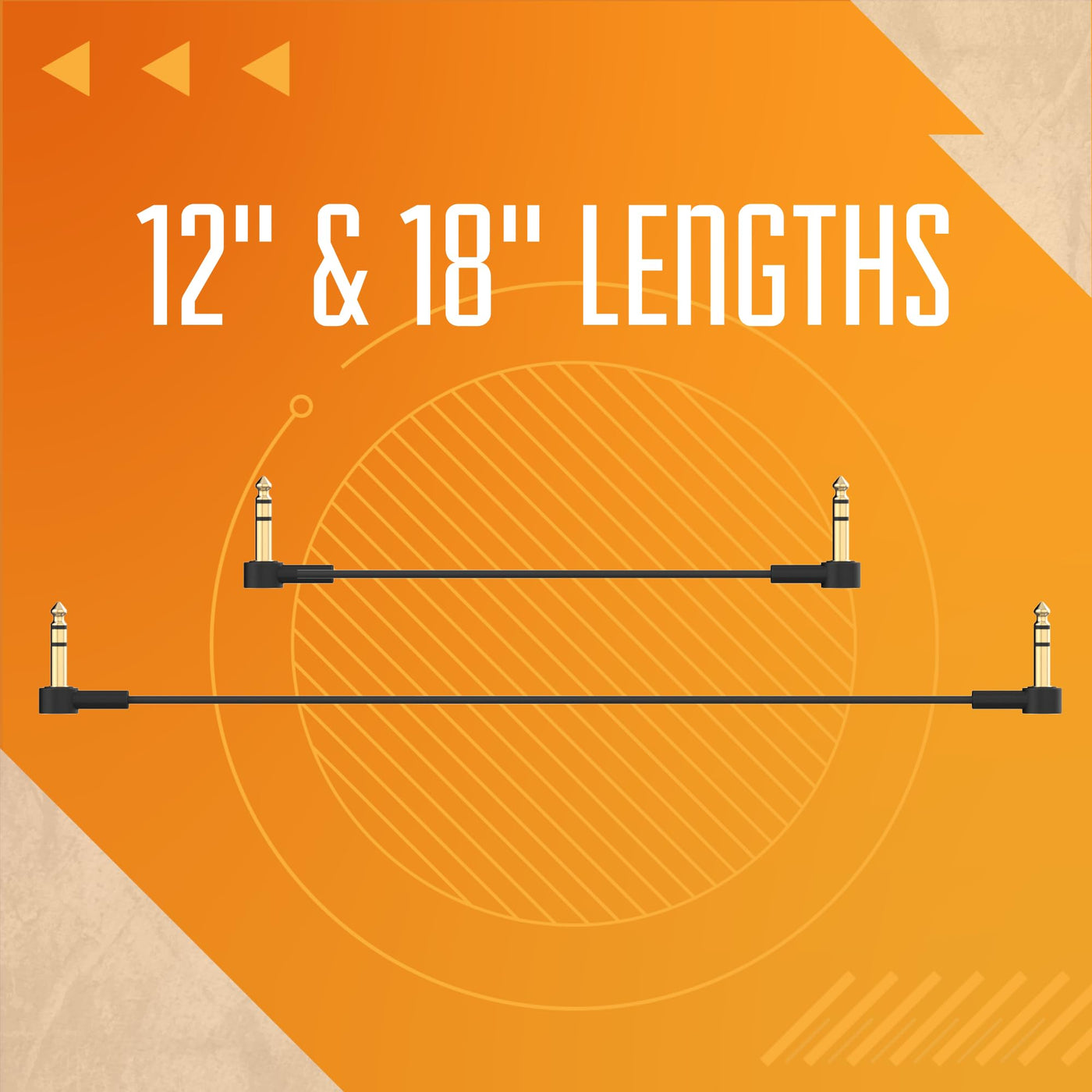 Q: What lengths are available for these patch cables?A: The Rock Stock TRS Flat Patch Cables come in various lengths, including 4", 6", 12" (1 foot), 18", and 24" (2 feet). This range of options allows you to tailor your setup based on your pedalboard configuration and the distance between your pedals.