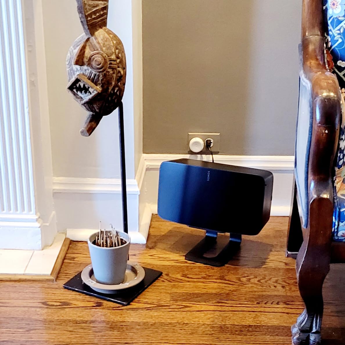 Here'S A Real Review Froma Customer: ''The Pro -5 Speaker Stands Are An Excellent Companion For The Sonos Play 5 Speaker In Either ''Vertical'' Or ''Horizontal'' Configuration. I Desired A Small Speaker Stand With Minimalist Design To Lift Them From The Floor Surface. These Are Splendid While Also Reducing Unwanted Speaker Resonance. ????Aesthetically & Acoustically Satisfied!!!'' 4 Rubber Feet Pre-Applied, With An Extra 8 Rubber Fet Included For Use On Top Plate If Necessary.