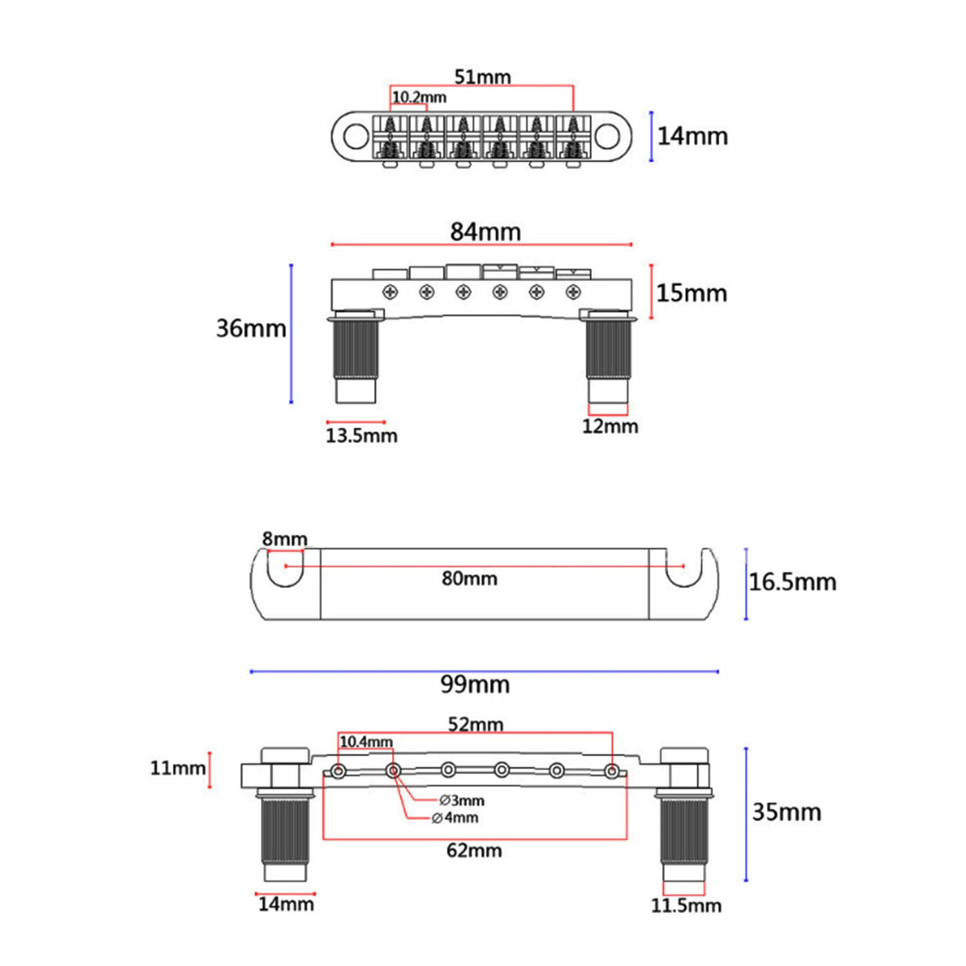 Material: Metal; Color: Gold Gold Finish Ensures High Glossiness And Great Anti-Corrosion Performance.. Application: Gibson, Les Paul, Sg Electric Guitar This Item Includes 4 Matching Posts (2 For Tailpiece, 2 For Bridge) Bridge Studs Hole Center Distance: 73.5Mm/2.9In; Tailpiece Studs Hole Center Distance: 80Mm/3.15In Easy And Quick To Mount. This Kit Includes 1 Piece Guitar Bridge Saddle Tailpiece Kit With Attached Studs And Bushings. Tune-O-Matic Bridge And Tailpiece Allow Individual Saddle Adjustments, Height Adjustment, Improved Intonation, And Absolute Stability. With Fully Adjustable Saddles And Height, This Bridge Set Is An Excellent Replacement For Older Non-Adjustable Bridge/ Tailpiece Combos. Package Includes: Package Include: 1 Set Lp Bridge & Tailpiece