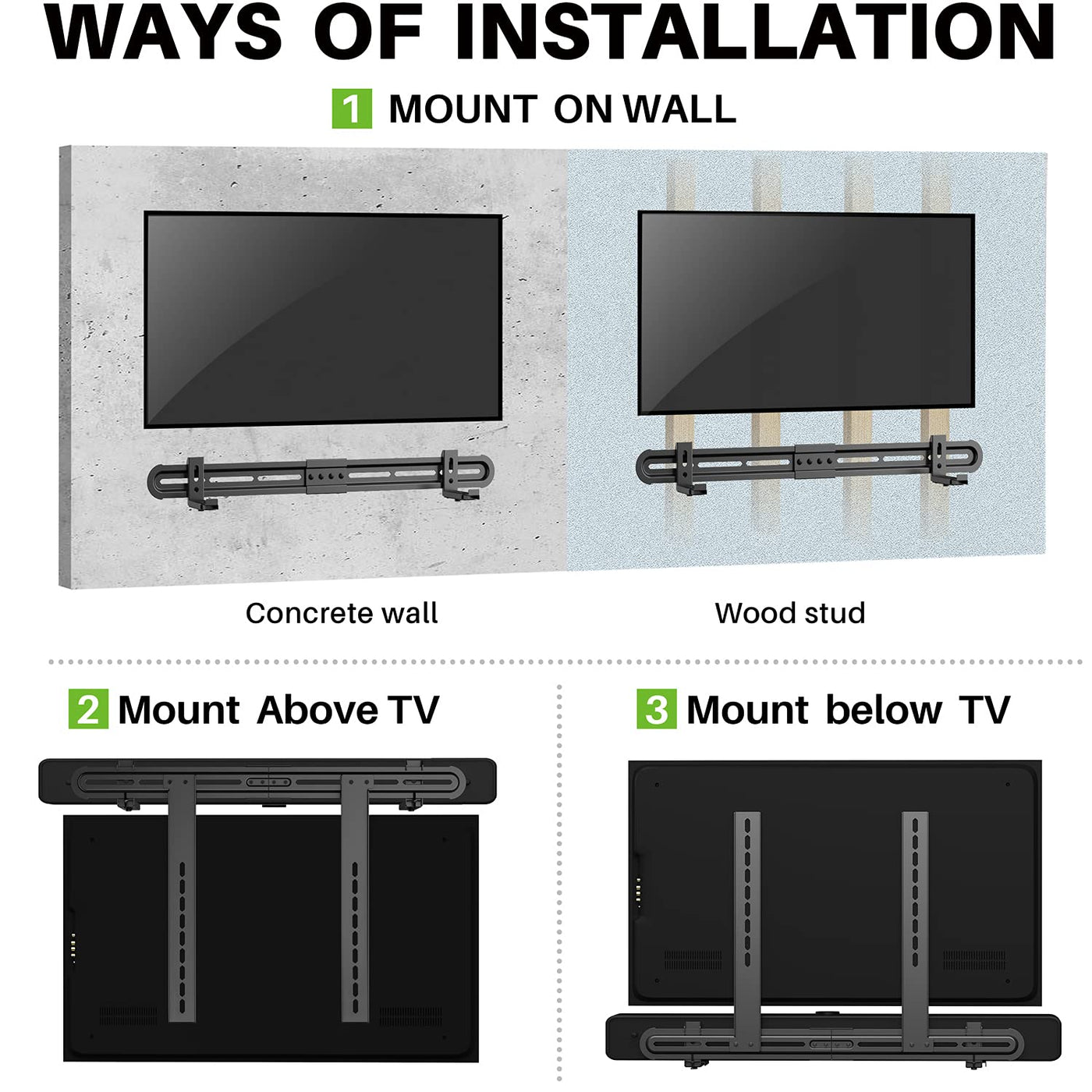 Usx Mount Universal Soundbar Mount Sound Bar Mounting Bracket To Tv, Soundbar Wall Mount Fits 3 Options With Hole/Without