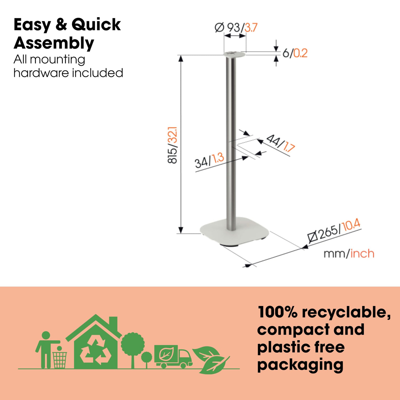 The Sonos Speaker Stand For Era 100 From Vogels Is The Ideal Way To Enhance Your Listening Experience Without Drilling Holes In Your Walls. This 82-Cm Stand Positions Your Speaker Perfectly At Ear Level. The Sleek And Unobtrusive Design Has A Sturdy Base And Has Been Acoustically Tested For Optimised Sound. The Cable Management System Keeps Cords Out Of Sight So You Can Get The Most Out Of Your Sonos Without Detracting From Your Interior.