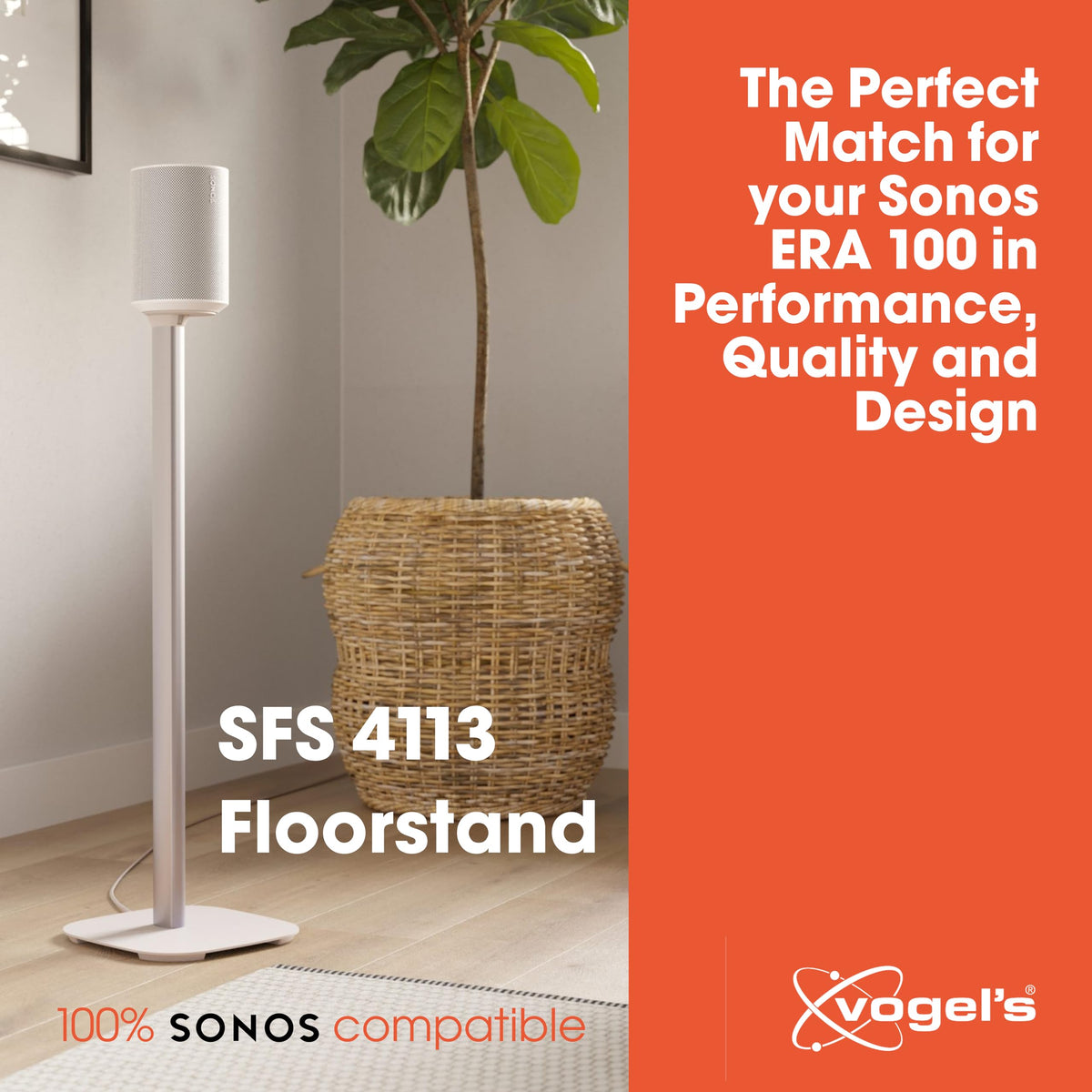 Vogels Sfs 4113 Speaker Floor Stand For Sonos Era 100, Cable Inlay System, Height: 32,3 Inch (82 Cm), Exceptionally Stable, Whi