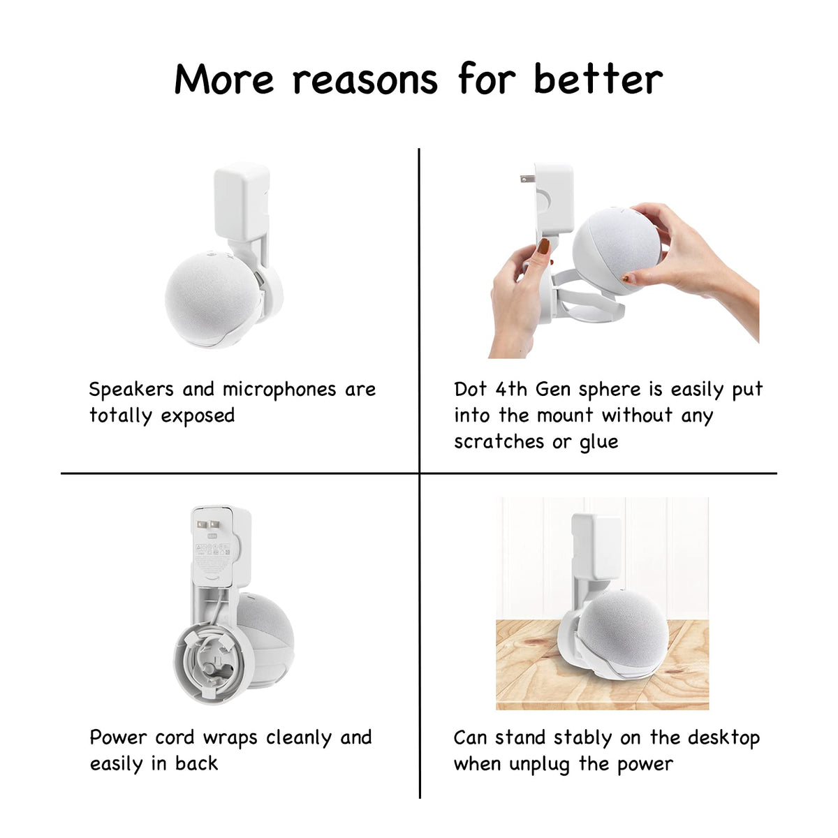 Zuolaco Wall Mount Holder For Dot 4Th/5Th Generation, Outlet Hanger For Dot 4Th/5Th Gen, Smart Speaker Stand, Space Saving Acces