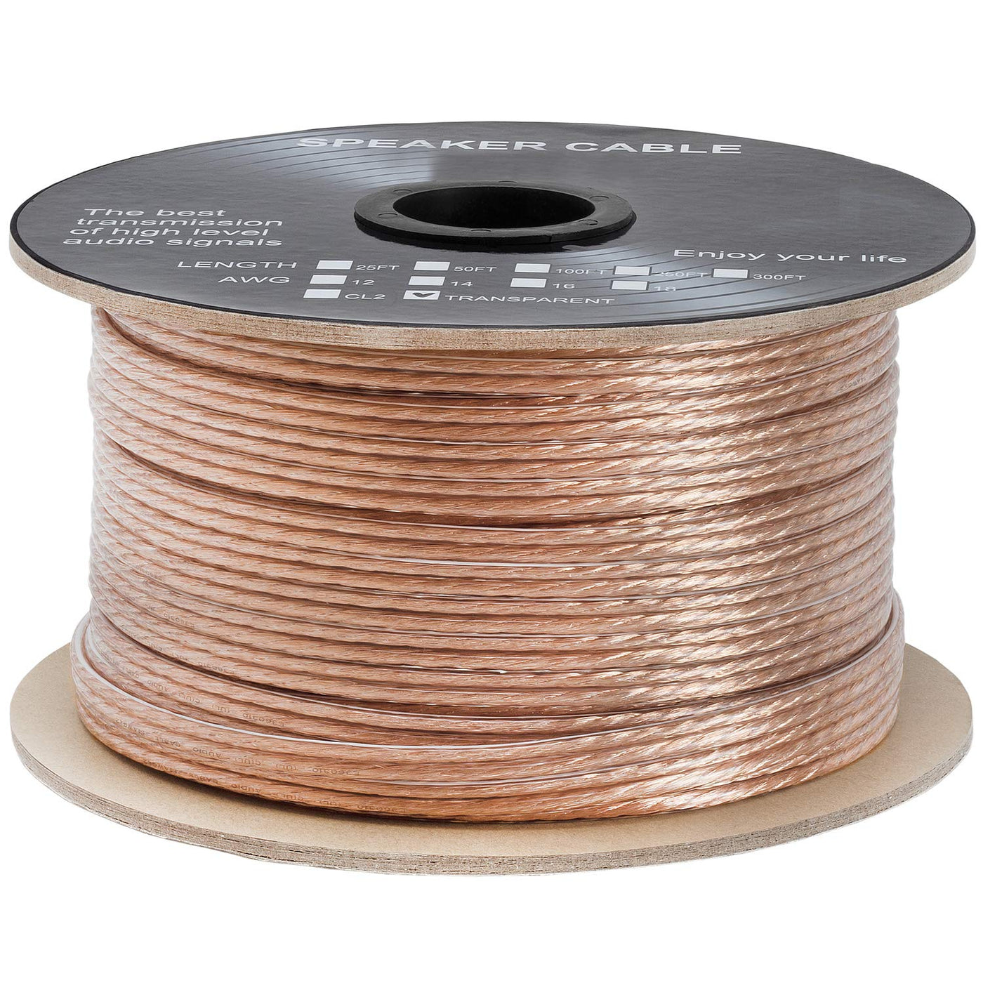 Cmple 2 Conductor 12Awg Speaker Wire For Home Theater System, Amplifier, Car Audio Speaker Cable 50 Feet, Clear