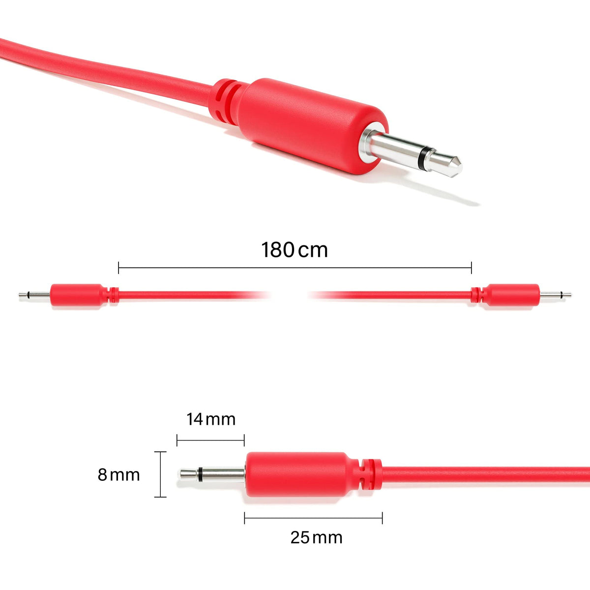 Excelvalley - 5-Pack - Mono Modular Patch Cables - Ts 3.5Mm 1/8 Eurorack Synthesizer [Red | 200 Cm - 78.74]