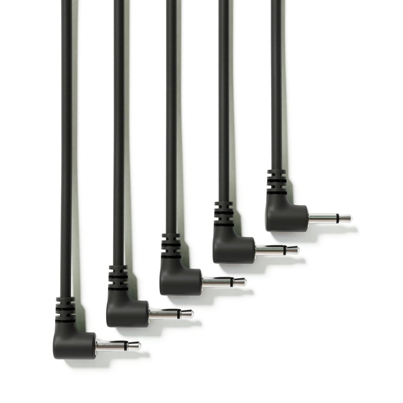 Excelvalley - 5-Pack - Right Angle Mono Modular Patch Cables - 3.5Mm 1/8 Eurorack Synthesizer [Black | 20 Cm - 7.87]