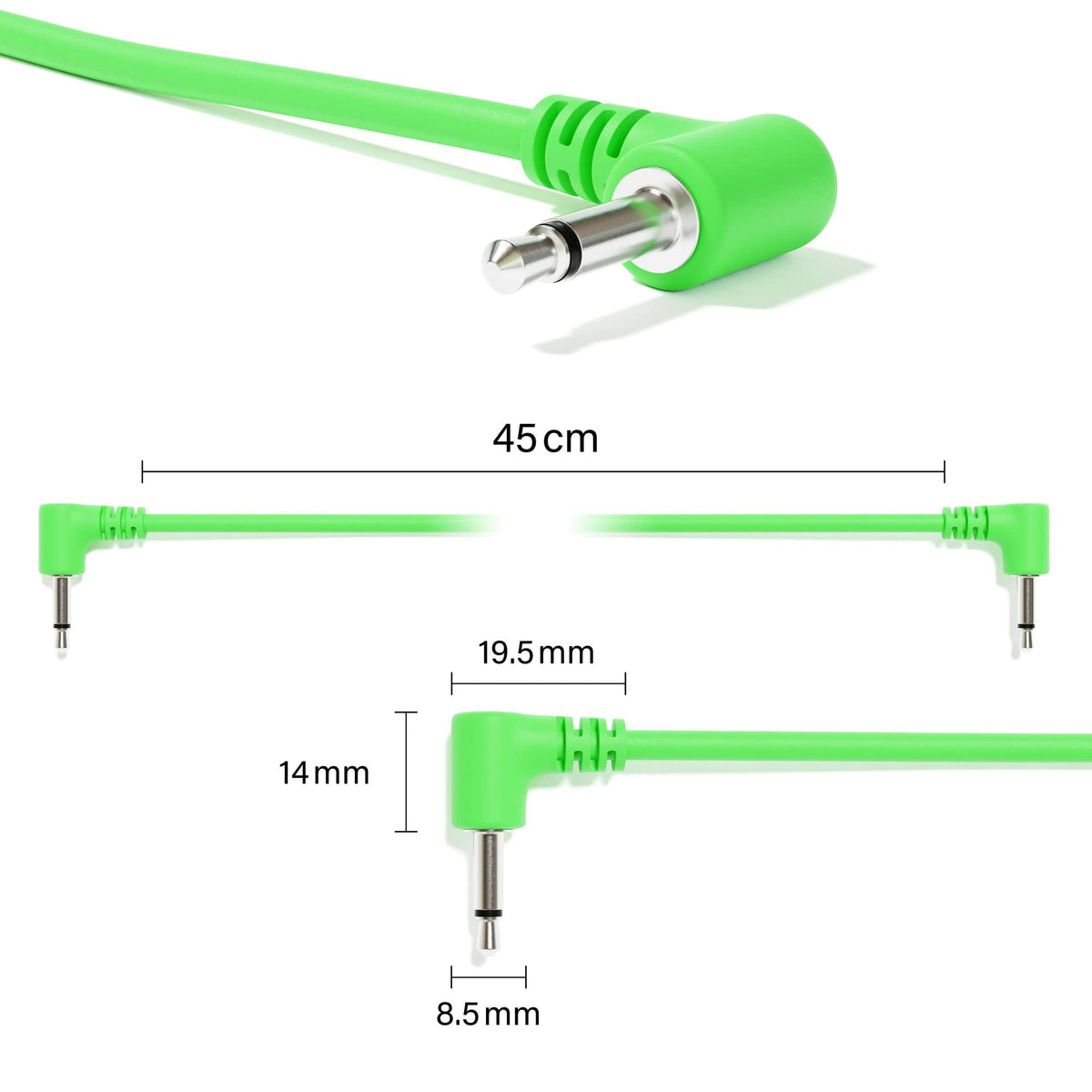 Excelvalley - 5-Pack - Right Angle Mono Modular Patch Cables - 3.5Mm 1/8 Eurorack Synthesizer [Green | 200 Cm - 78.74]