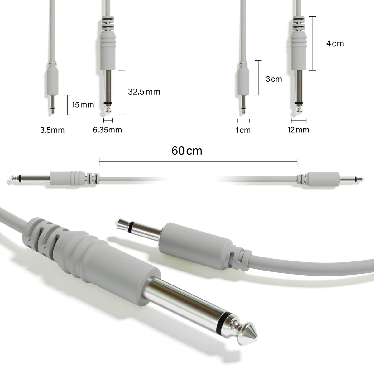 Excelvalley - Mono Patch Cables - Ts 3.5Mm 1/8 To 6.35Mm 1/4Suitable For Your Eurorack Modular Synthesizer, Or Other General Patching Duties, Where A Mono 3.5Mm To 6.35Mm Cable Is Needed.This Kind Of Modular Patch Cables Are 1/8 To 1/4 Ts Patch Cables With Molded Ends For Exceptional Durability. Perfect For Keeping Track Of Your Cv, Gate And Audio Signals.Featuresset Of Multiple Pieces, Different Colors & 1 Lengthfully Molded Patch Cables Constructed Of 26Awg Stranded Copper Wire99.99% Pure And Oxygen Free Coppernickel Plated Connectors Provide High Corrosion Protectiongood Quality Molded Plastic Connectorsflexible Strain Reliefcompatible With: Roland, Moog, Doepfer, Arturia, Korgspecificationsconnectors: 1 X Ts 3.5 Mm (1/8 - 1/8 Inch): Analog Mono - Unbalancedstraight Jack - Male1 X Ts 6.35 Mm (1/4 - 1/4 Inch):Analog Mono - Unbalancedstraight Jack - Maletype: Mono Patch Cablesgauge: 26 Awg - American Wire Gaugecable Length (Options):10 Cm - 3.94 Inch - 0.33 Feet15 Cm - 5.91 Inch - 0.49 Feet20 Cm - 7.87 Inch - 0.66 Feet30 Cm - 11.81 Inch - 0.98 Feet45 Cm - 17.72 Inch - 1.48 Feet60 Cm - 23.62 Inch - 1.97 Feet90 Cm - 35.43 Inch - 2.95 Feet120 Cm - 47.24 Inch - 3.94 Feet150 Cm - 59.06 Inch - 4.92 Feet180 Cm - 70.87 Inch - 5.91 Feet200 Cm - 78.74 Inch - 6.56 Feetpackage (Options):6A-Pack - 6 Pieces: Black, Blue, Green, Red, White, Yellow6B-Pack - 6 Pieces: Army Green, Brown, Orange, Peach, Pink, Purple10-Pack - 10 Pieces: 6A-Pack + Orange, Peach, Pink, Purple12-Pack - 12 Pieces: 10-Pack + Army Green, Brown13-Pack - 13 Pieces: 12-Pack + Grey