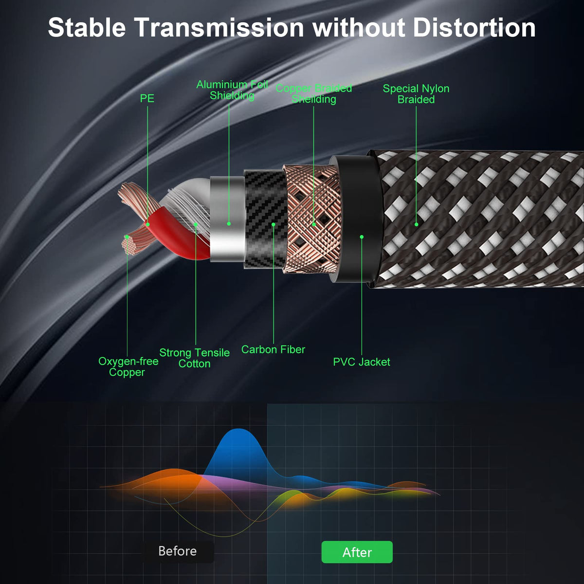 Experience Crystal-Clear Audio Transmission With Our Premium Fibbr Xlr Cable, Meticulously Crafted For Durability And Superior Sound Quality. This 6Ft/2M Cable Boasts A Robust, Flexible Nylon Braided Jacket, Ensuring Optimal Performance Even After 20,000+ Bends. Its Multi-Layer Shielding, Comprising Cotton, Copper, Carbon Fiber, Tpe Jacket, And Nylon Braid, Effectively Blocks 99% Of Interference Signals, Eliminating Noise And Hum. The Cable Features A Metal Spring Sr Design For Enhanced Flexibility And Durability, With Heavy-Duty Alloy Connectors For Secure Connectivity. Plug And Play Ready, Its Compatible With A Wide Range Of 3-Pin Xlr Devices, Making It An Ideal Choice For Stage Sound, Ktv, And Professional Sound Reinforcement Systems.