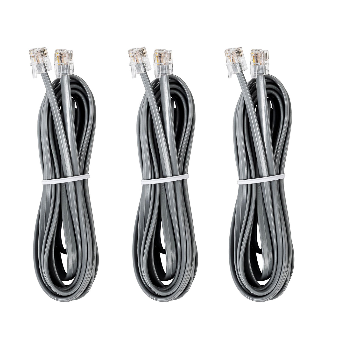 Jmzly Rj12 Cable Phone Cord Rj12 6P6C Male To Male Straight Wired For Both Data And Voice Use Silver 15 Feet 3 Pack