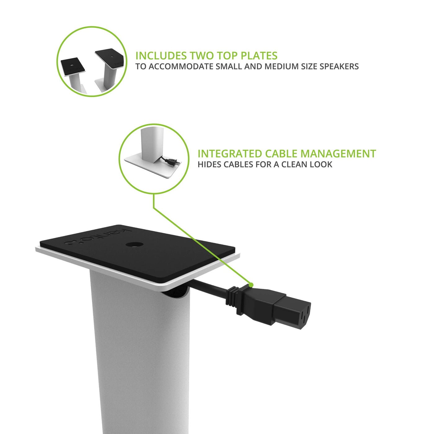 Measuring 9-Inches Tall, Sp9 Desktop Speaker Stands Bring Your Yu2, Yu4, Or Other 3 To 4-Inch Speakers Into Better Alignment With Your Ears, Letting You Capture A Wider Range Of Frequencies. Their Heavy Steel Structure And Closed Cell Foam Padding Further Improve Nearfield Listening By Significantly Reducing Vibration, Leaving You With Cleaner, More Accurate Sound. Two Top-Plate Sizes Are Included, Each Providing 30 Degrees Of Rotation And Featuring A Mounting Hole And 1/4'' - 20 Screw To Secure Compatible Speakers In Place. For A Clutter-Free Setup, Conveniently Route Your Cables Through The Center Of Each Stand.
