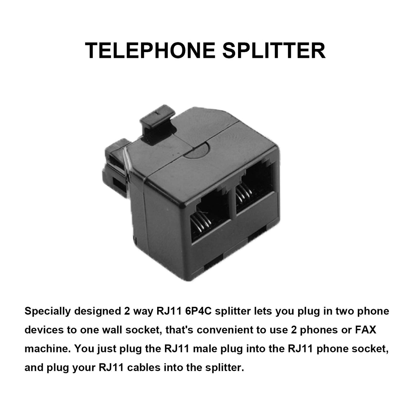 Kinxiyu Phone Cord 50Ft, Landline Telephone Cable With Rj11 Plug, Includes Telephone Inline Coupler Rj11 Splitter And 20Pcs Cable Clips(Black)