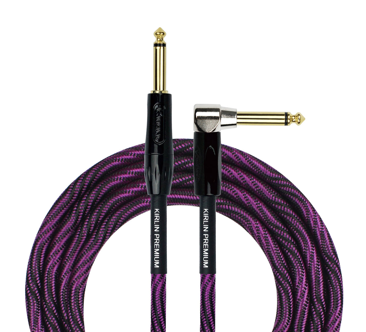 Kirlin Cable Iwb-202Bfgl-10/Wbp - 20 Feet - Straight To Right Angle 1/4-Inch Plug Premium Plus Instrument Cable, Black Purple Wave, Woven Jacket.