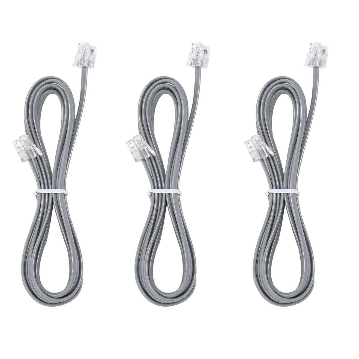 Lansensu Telephone Landline Extension Cord Cable Cord With Standard Rj 11 6P4C Plug (6Ft 3Pack Silver, Silver)