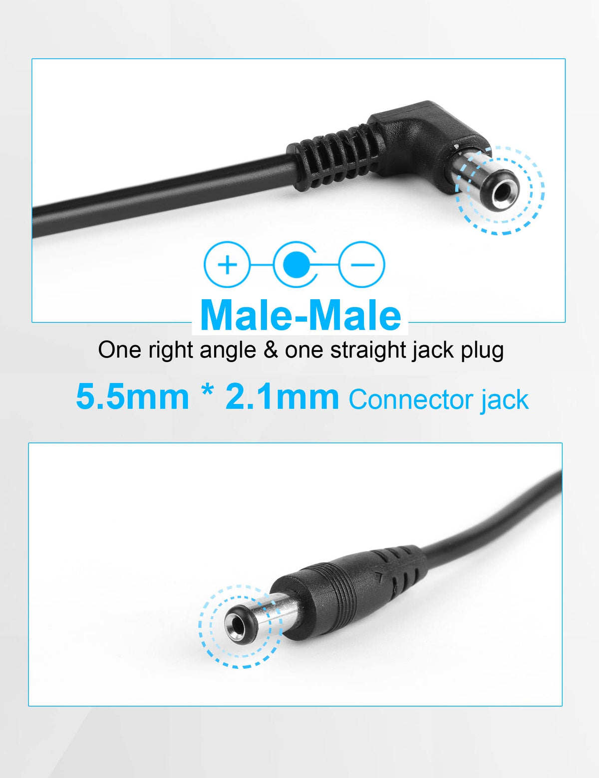 Guitar Effect Pedal Dc Cable : Product: 8 Pcs Dc Cable Length: 2Ft / 24 In /60Cm. Plug Diameter: Male To Male 5.5 X 2.1 Mm Jack. Material Quality: Oxygen-Free Copper Wire. Male To Male, One Right Angle And One Straight Jack. 5.5Mm (Outside Diameter) X 2.1Mm (Inside Diameter), Negative In The Center. Suitable For: Guitar Effect Power Supply. Package Content: 8 Pcs X Guitar Effect Pedal Dc Cable