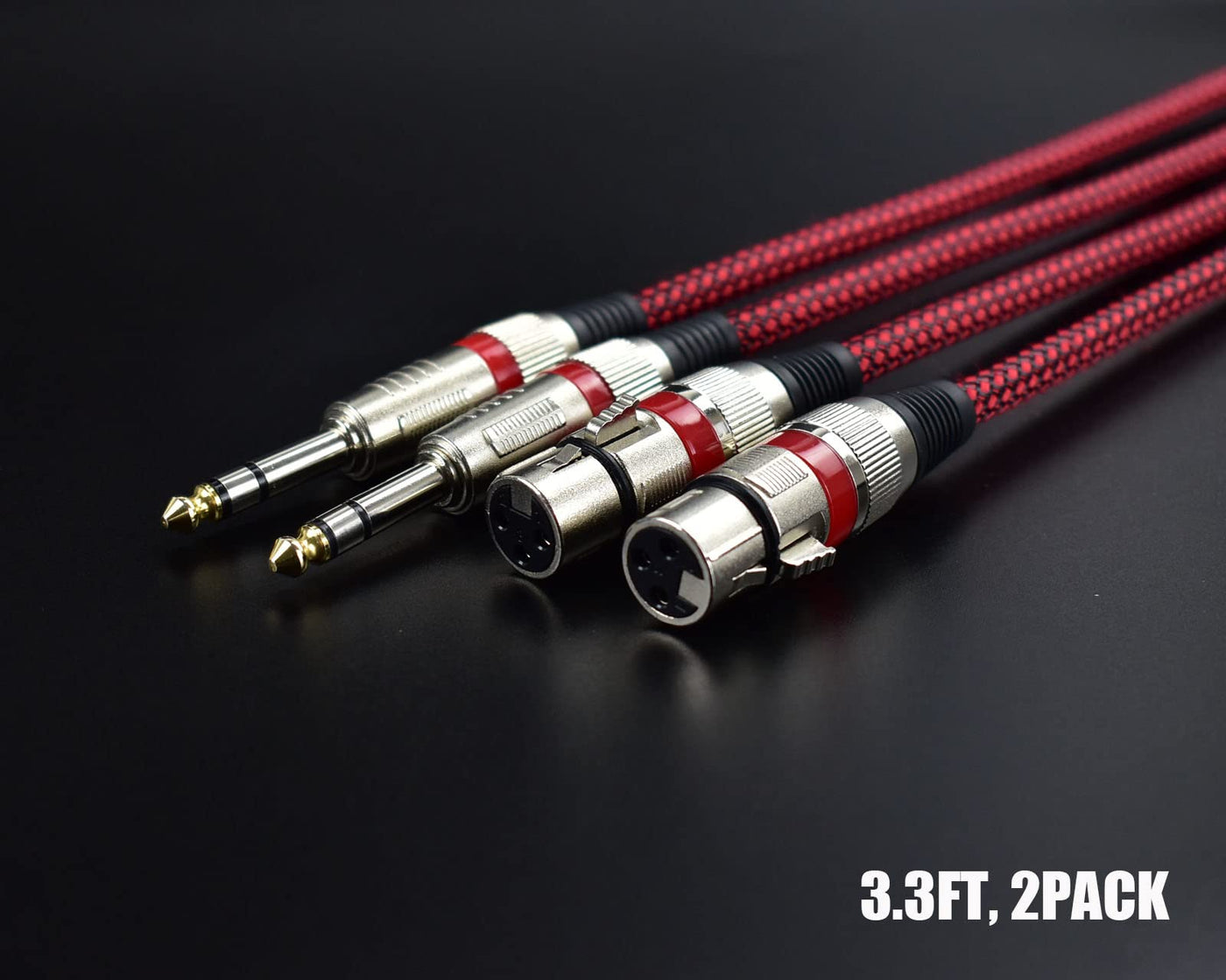 3.3Feet/1Meter 3Pin Xlr Female To 1/4 Quarter Inch 6.35Mm Trs Balanced Audio Cable Adapter ?Features? ? Balanced Connection, No Signal Distortion ? Spiral Ofc Shielded, No Hum, No Buzz ? Nylon Braided, Thick By 0.3Inch Diameter, Heavy Duty ? Sturdy Connector, Solid Solder Joints, 2 Years After-Sales Support ?Application? This 1/4 Stereo Trs Male To Xlr Female Cable Is Designed To Output Balanced Audio Signal From Xlr Port To Quarter Inch Balanced/Unbalanced Input Device. People Mostly Use It To Connect Mic To Karaoke Machine. Other Suitable Devices Include Mixer, Keyboard, Interface, Effects, Equalizer, Etc. General Xlr3F Output Device: Microphone, Mixer, Dj Controller, Keyboard, Effects, Amp, Electric Drum, Audio Interface, Studio Monitor, Etc. Normal Xlrf Output Port: Main Out, Master Out, Sub Out, Stereo Out, Microphone, L/R Xlr Female, Etc Suitable 1/4Inch Bal/Unbal Input Device: Karaoke Machine, Mixer, Dj Controller, Keyboard, Effects, Amp, Electric Drum, Audio Interface, Studio Monitor, Etc. Normal 1/4Inch Bal/Unbal Input Port: Bal/Unbal Line, Mic, Ts Mono, Mic/Line Combo, Insert, Aux, Etc Notice: ? Condenser Microphone Need Phantom Power Firstly, Please Do Not Use This Cable To Connect Condenser Mic To 1/4Inch Jack Directly. ? Please Also Do Not Connect Mic To 1/4Inch Line Or Inst Jack, Due To Mis-Match Impedance Issue, You Wont Get Clear Signal. ? For Speaker Connection, Please Only Use For Powered Speakers, As Passive Speaker Need A Preamp Before It Can Play The Sound. ?Specification ? ? Length: 3.3 Feet (1 Meter), 2Pack ? Conductor: 24 Awg Ofc (Oxygen Free Copper) ? Trs Male: 1/4 Inch / 6.35Mm, Balanced Type ? Xlr Female: 3 Pin Balanced ? Shield: 90% Ofc Spiral ? Coating: Braided Nylon + Pvc