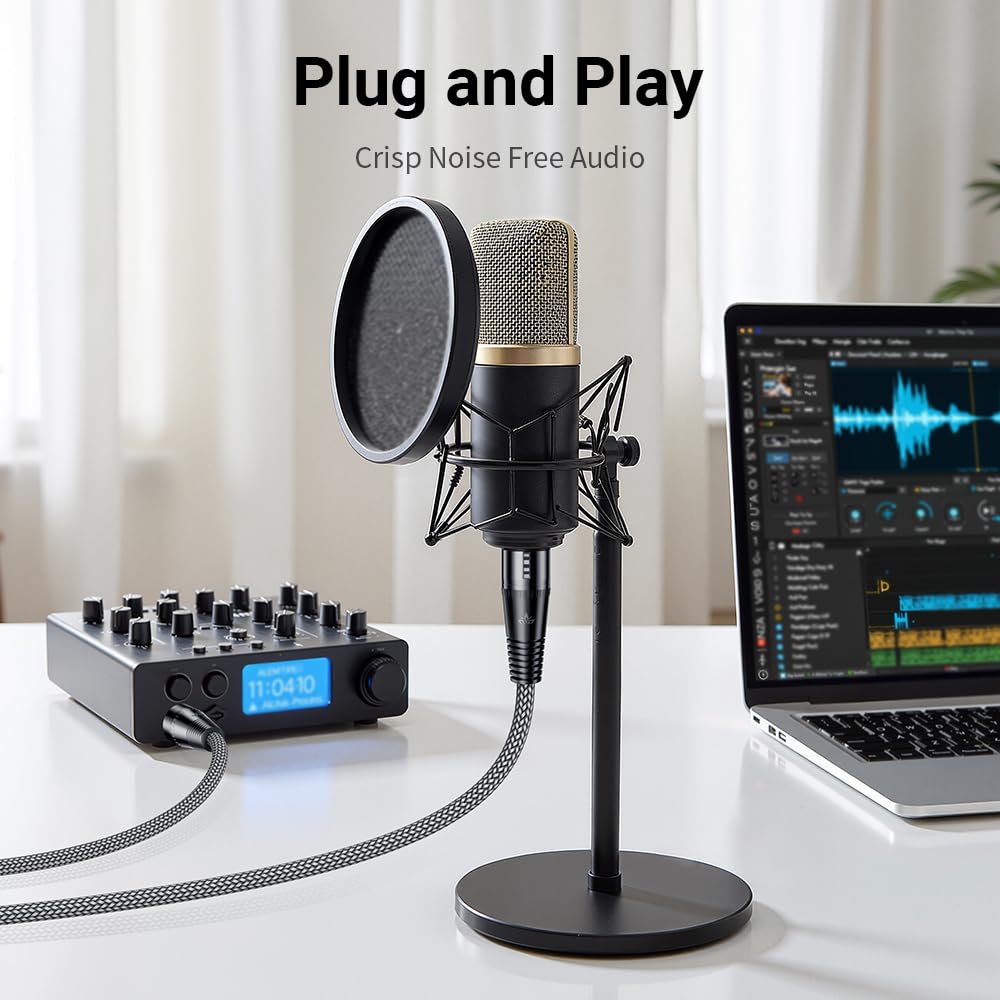 Riksoin Xlr Microphone Cable Male To Female 3 Pin Nylon Braided For Studio Recording And Live Production