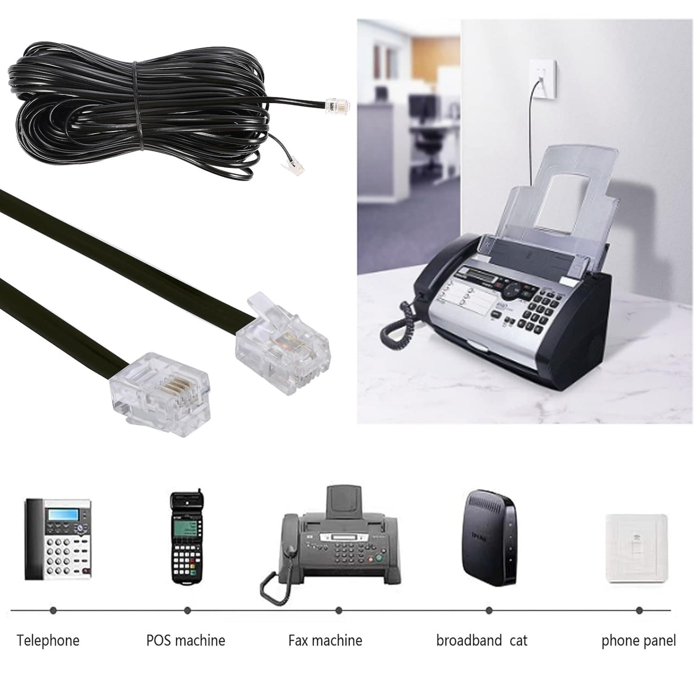 20 Feet Long Telephone Extension Cord Phone Cable Line Wire, With Standard Rj11 Plug And 1 In-Line Couplers And 15 Cable Clip Holders-Blac