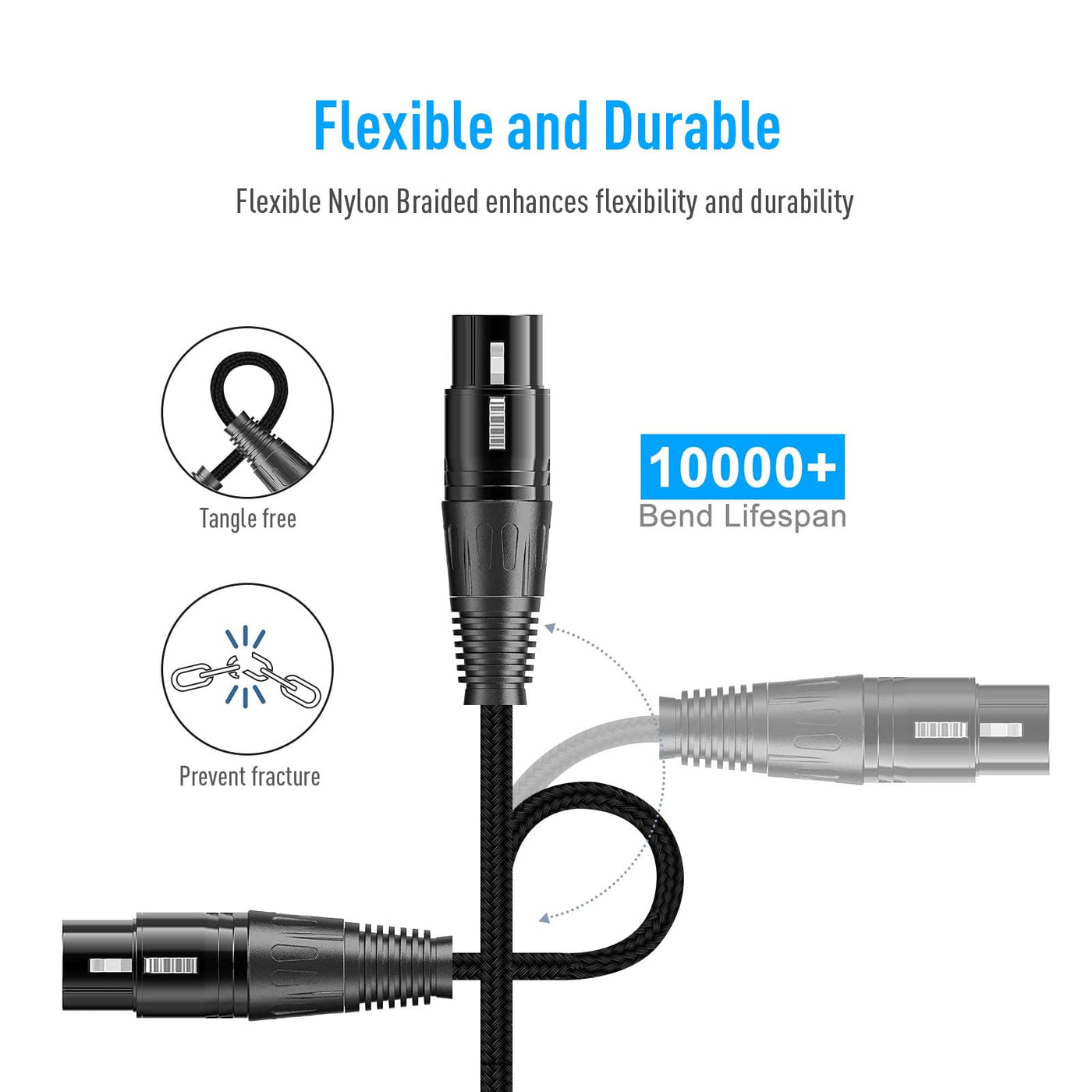 Shaevle Xlr Microphone Cable Male To Female 3 Pin Nylon Braided For Studio Recording And Live Production