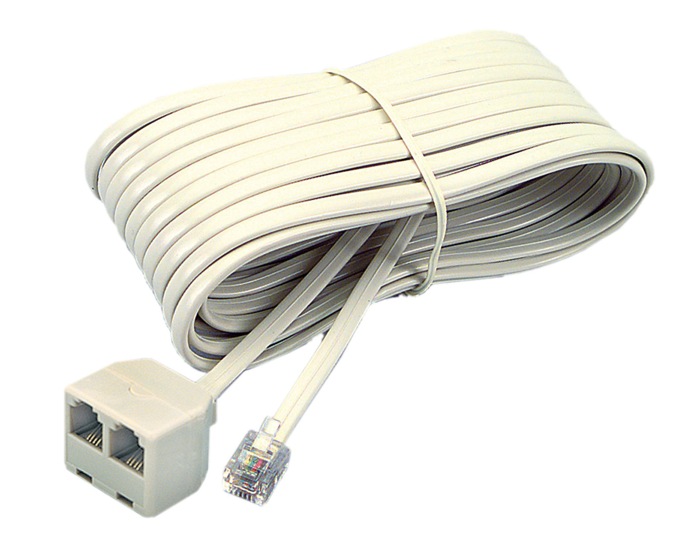 The 25 ft. phone line cord with duplex jack allows two phones or accessories to be plugged into a single modular wall jack up to 25 ft. away. The quality 25 ft. phone line cord has a single modular jack at one end and a duplex jack that accepts two devices allowing them to share a single line.