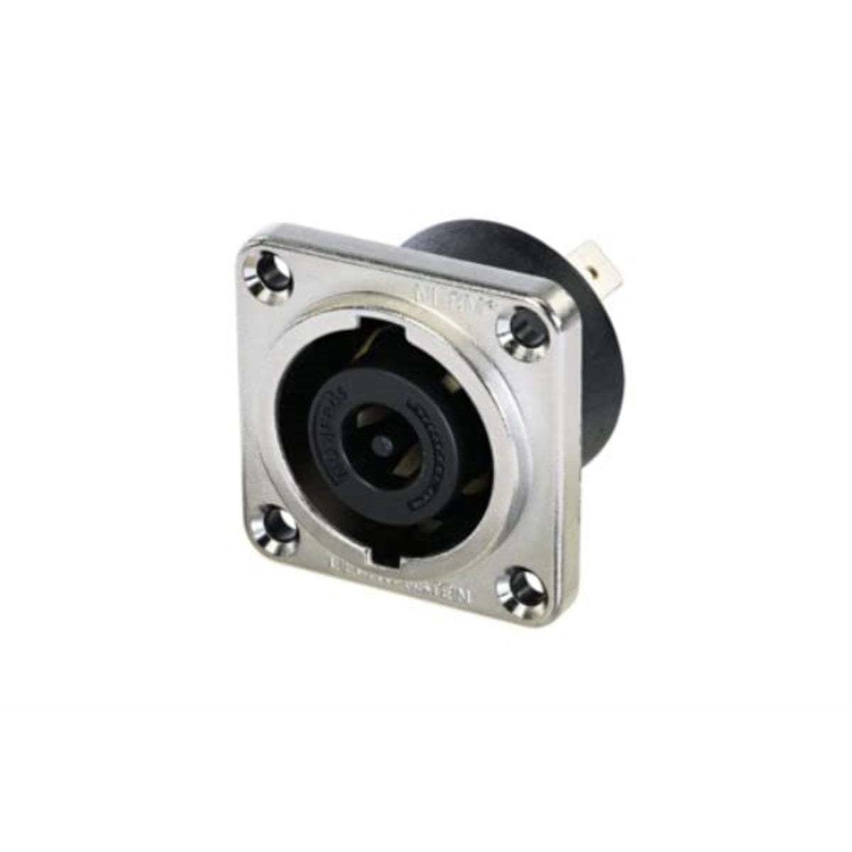 Speakon 8 Pole Male Chassis Connector, Metal Square G Size Housing, Countersunk Thru Holes, 1/4 In Flat Tabs